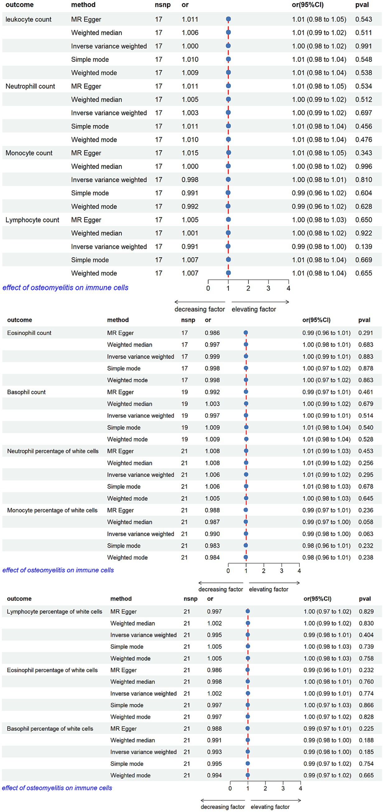 Figure 4. Mendelian randomization analysis of the causal effects of osteomyelitis on circulating immune cells.