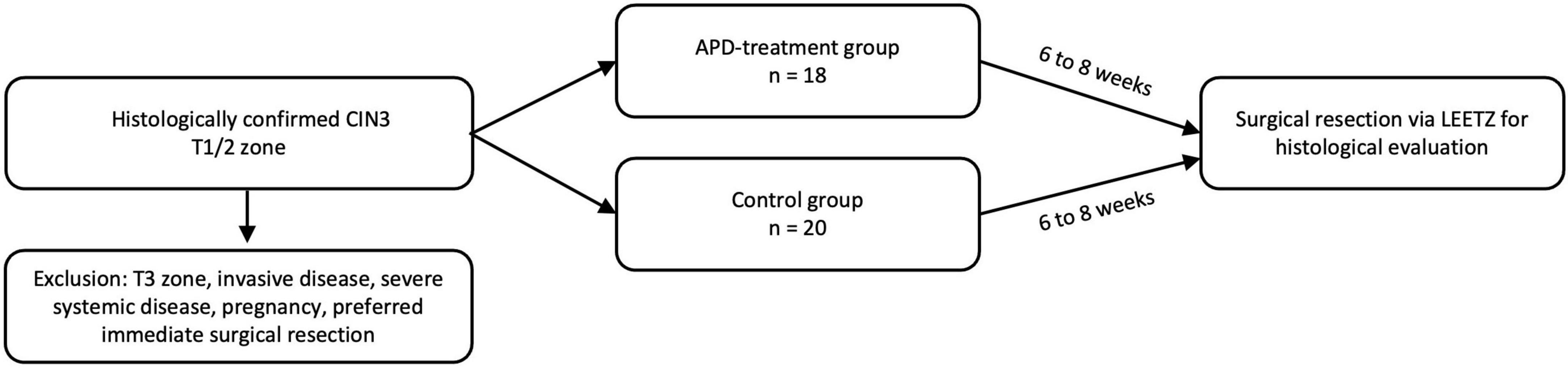 In this prospective, monocentric, controlled clinical study, we evaluate the efficacy of the APD intervention in patients with histologically confirmed CIN3, compared the outcomes to the spontaneous remission rate observed in a control cohort, and thereby aim to establish a proof-of-principle.