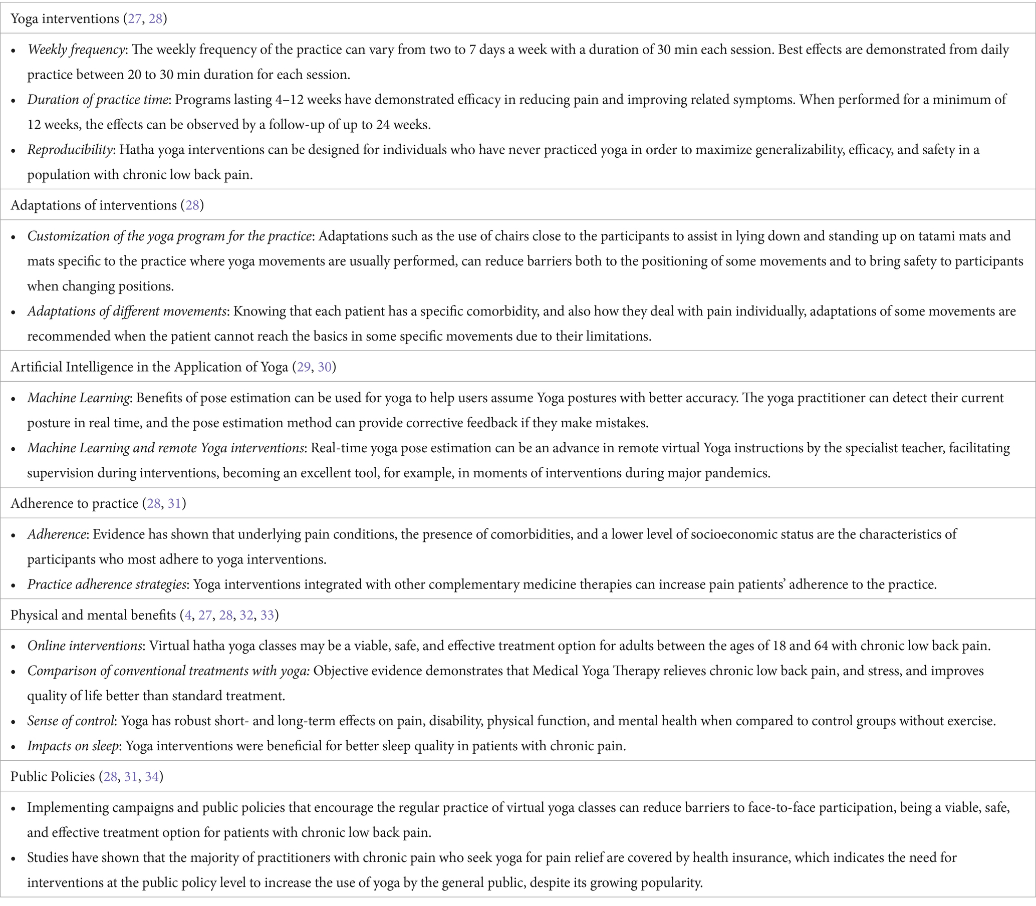 Considering the current study and the literature investigating the problem, we present recommendations to treat chronic pain through evidence-based yoga interventions (Table 5).