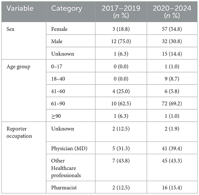 Table 2. Demographic characteristics of TIN cases associated with statin use (2017–2019 vs. 2020–2024).