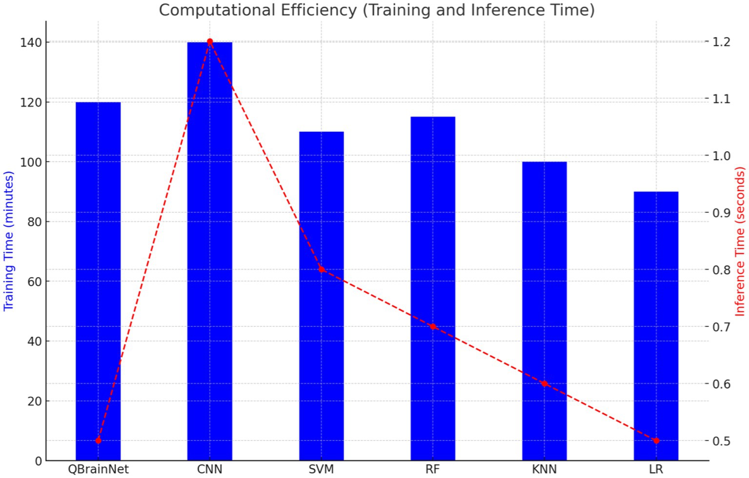Although its training time is slightly higher than that of traditional models, QBrainNet is comparable in real-time prediction time, considering its similar inference time. QBrainNet is a promising tool for clinical applications that allows for real-time decision-making.