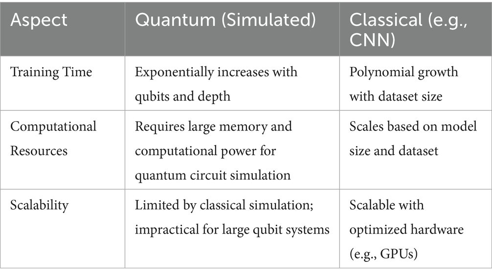 The main strengths of the QBrainNet model in comparison with classical approaches are linked to the possibility of dealing better with high-dimensional data. CNNs and other traditional techniques are bulky programs that handle big chunks of data, particularly in the case of medical image tests. Compared to this, QBrainNet takes advantage of quantum parallelism, where quantum gates and superposition significantly decrease the degree of computation and speed of processing (19). Such a decrease in computational demands and the increase in the prediction speed result in QBrainNet being a potential candidate in clinical practice, where the speed of diagnosis may be a matter of life and death.