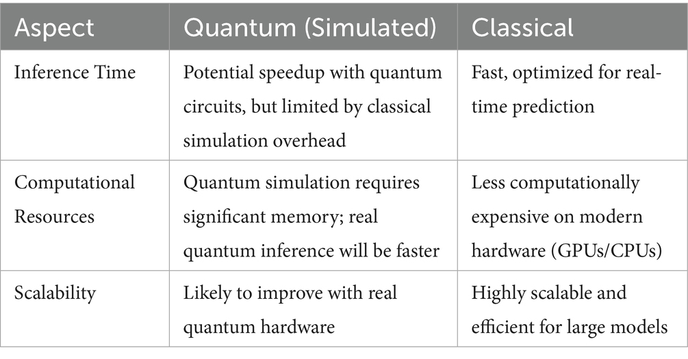 Discussion: The inference time is shorter, so the model can be used as a real-time clinical application. This article points to the possibilities quantum computing can have in revolutionizing medical diagnostics, especially stroke prediction.