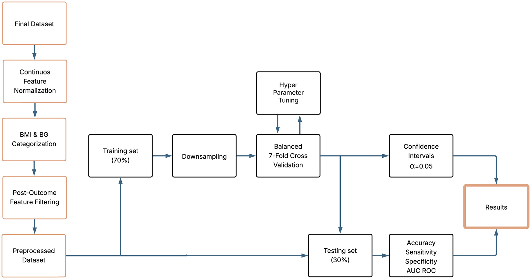 However, applying ML models to the prediction of CVR still presents important challenges. Among them are the poor adaptation of existing models to populations exposed to extreme working conditions and the limited consideration of the longitudinal evolution of risk factors over time (42). In addition, most previous studies have focused on cohorts of the general population or hospital settings, limiting the generalizability of their results to the reality of mining workers (43). Added to this is the lack of consensus on the best way to operationalize clinically relevant transitions in indicators such as BMI and glucose, key elements for adequate risk stratification in occupational health.