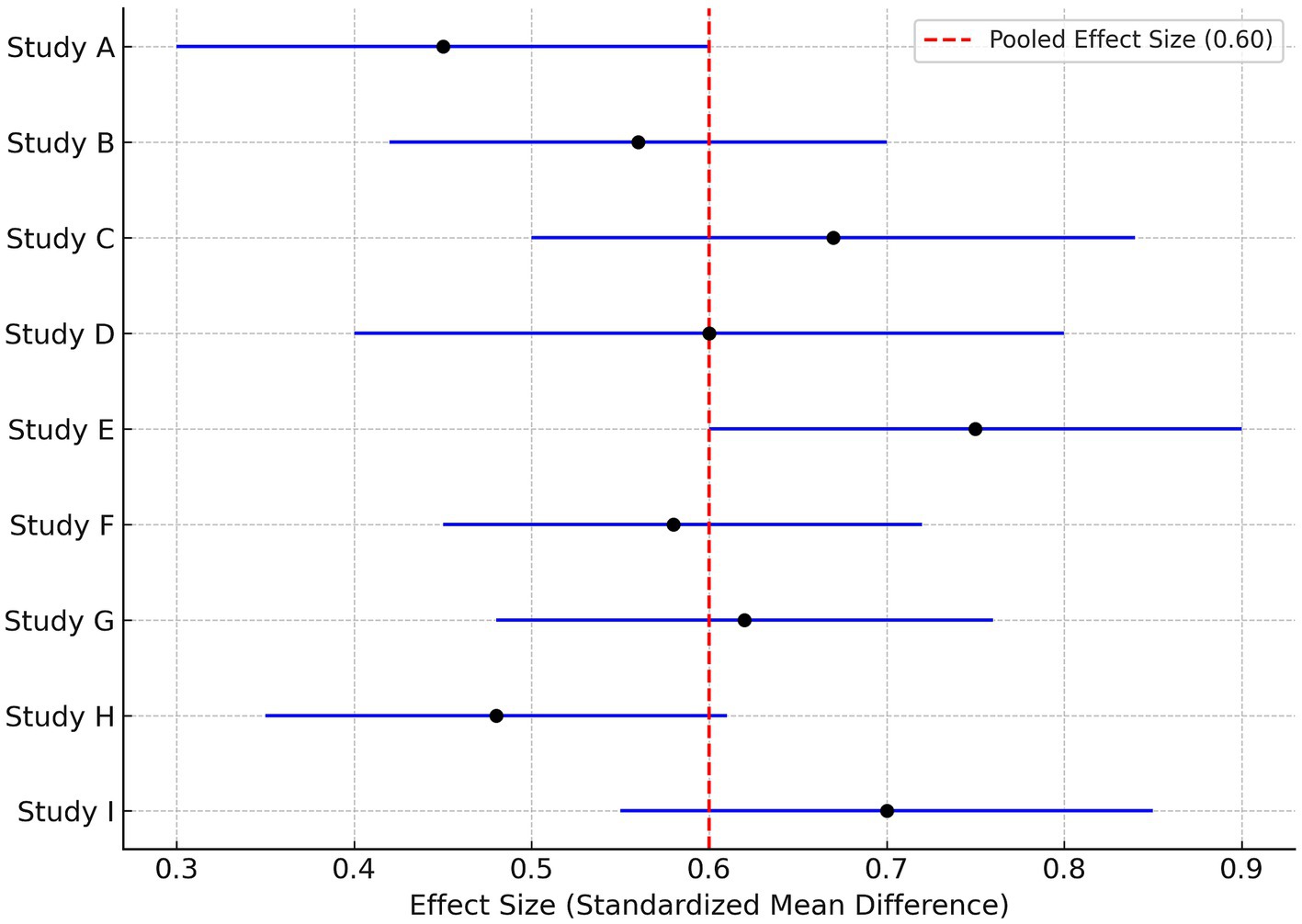 Meta-analyses were conducted using a random-effects model to account for heterogeneity. Effect sizes were reported as standardized mean differences or odds ratios with 95 percent confidence intervals. Statistical heterogeneity was assessed using I2 statistics, which considers heterogeneity substantial if greater than 50 percent (Cochran’s Q test), and was therefore included. Publication bias was assessed visually through funnel plotting and analytically, using Egger’s regression test. Sensitivity analyses were conducted by consecutively removing studies from analysis to determine the stability of results. Sub-group analyses to evaluate heterogeneity were conducted according to intervention, length of follow-up, and study designs, where applicable. All analyses were conducted in STATA software version 17.0 and ProMeta 3.0 (26).