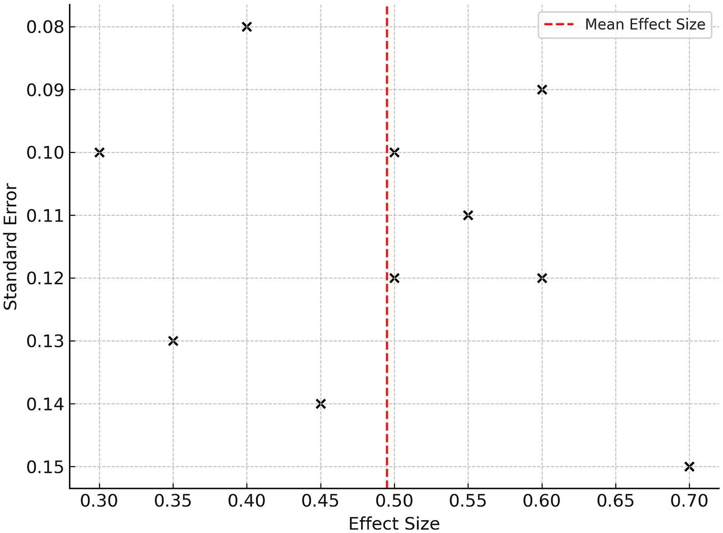 A funnel plot (Figure 3) was completed, which indicated a possible publication bias. The funnel plot is depicted as visually symmetrical across the studies, which provides evidence that publication bias is minimal. Egger’s test indicated no small-study effects (p = 0.204), which supports the high assessment ability of the pooled estimate (36, 37).