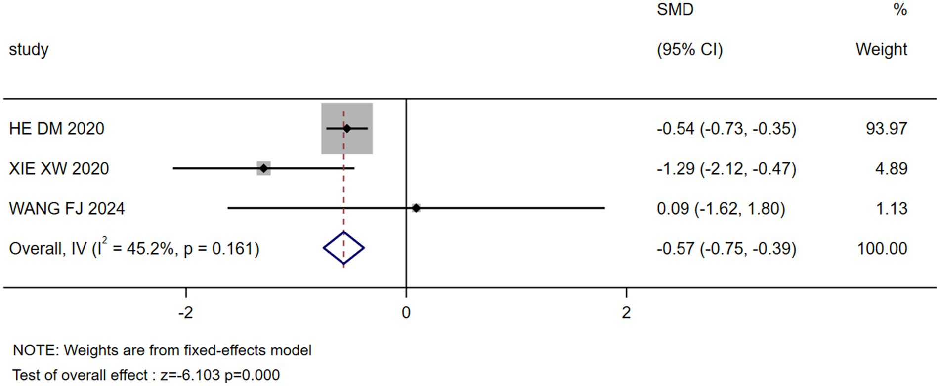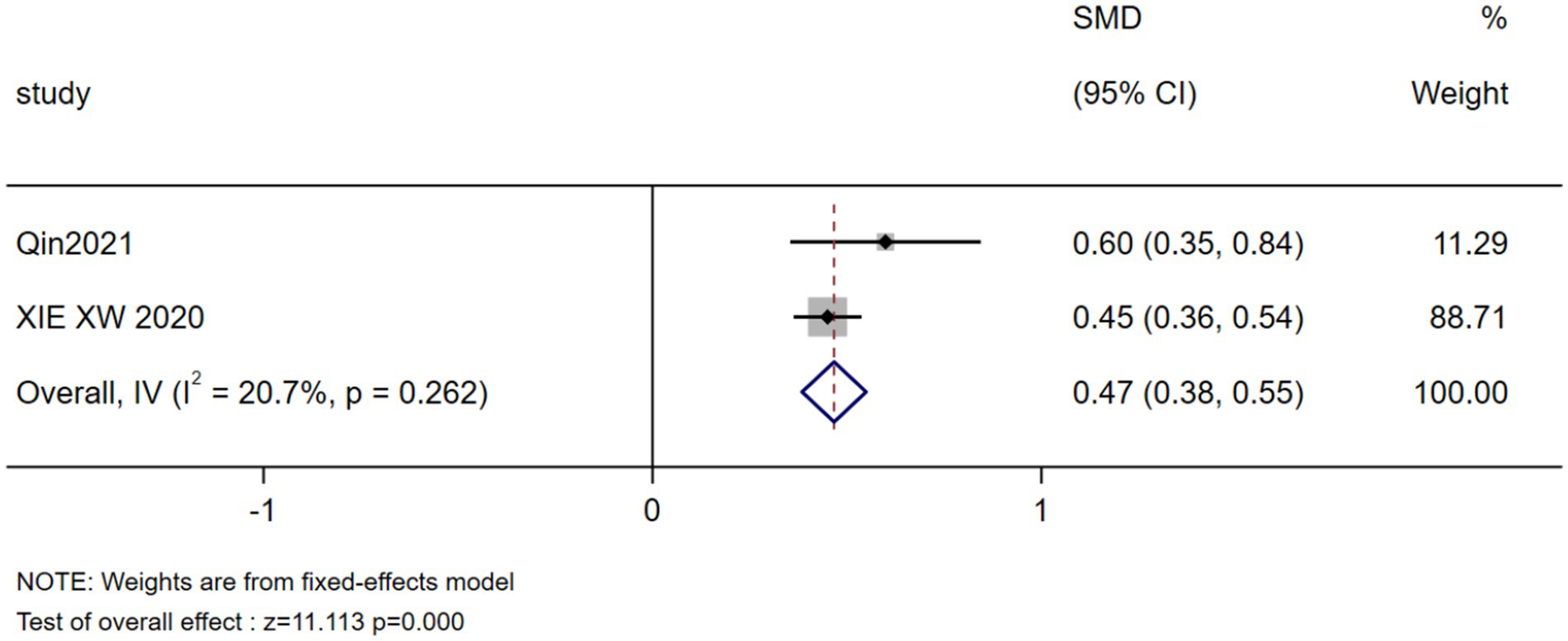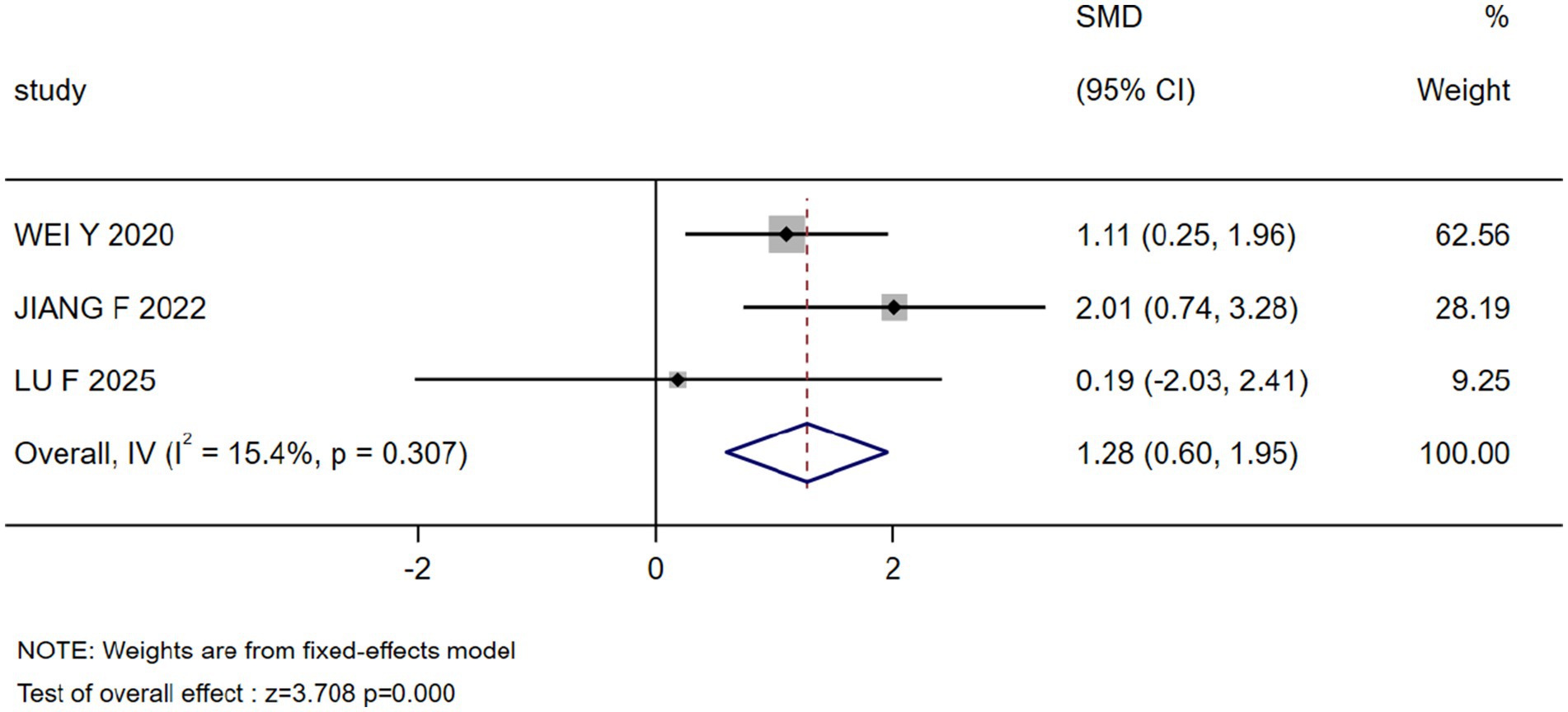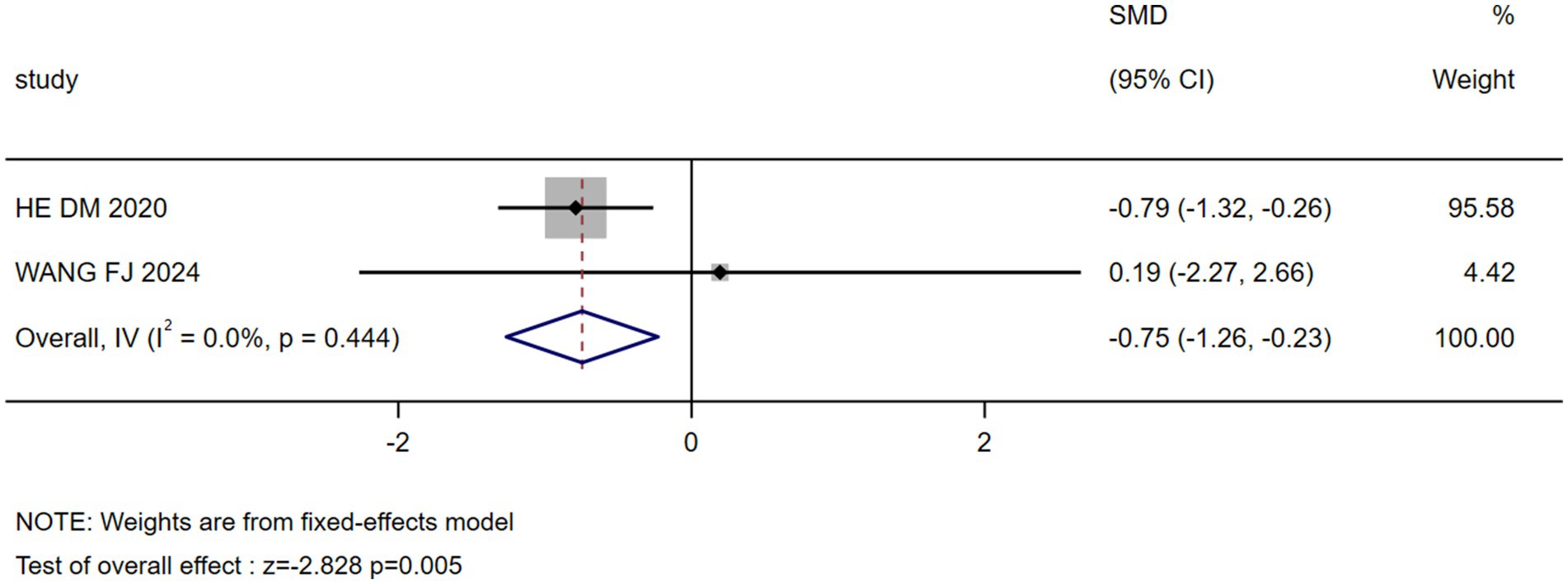 For factors reported in <2 studies, descriptive synthesis was performed by reporting individual study effect sizes without quantitative pooling. For factors reported in ≥2 studies, standardized mean differences (SMD) were computed as the comparative effect measure. All factors were analyzed using inverse-variance weighted fixed-effects or random-effects models, selected based on the results of heterogeneity tests.