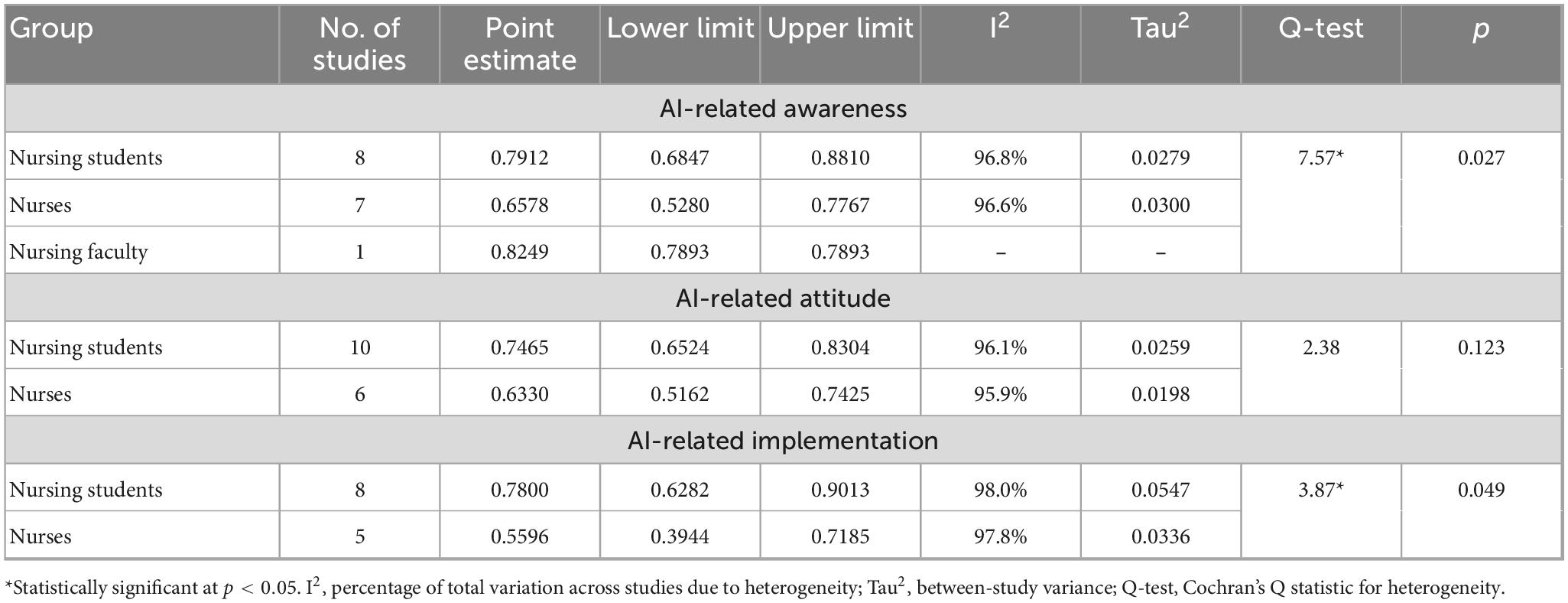 3.2.3 Findings of meta-analysis for AI-related implementation in nursing-related groups