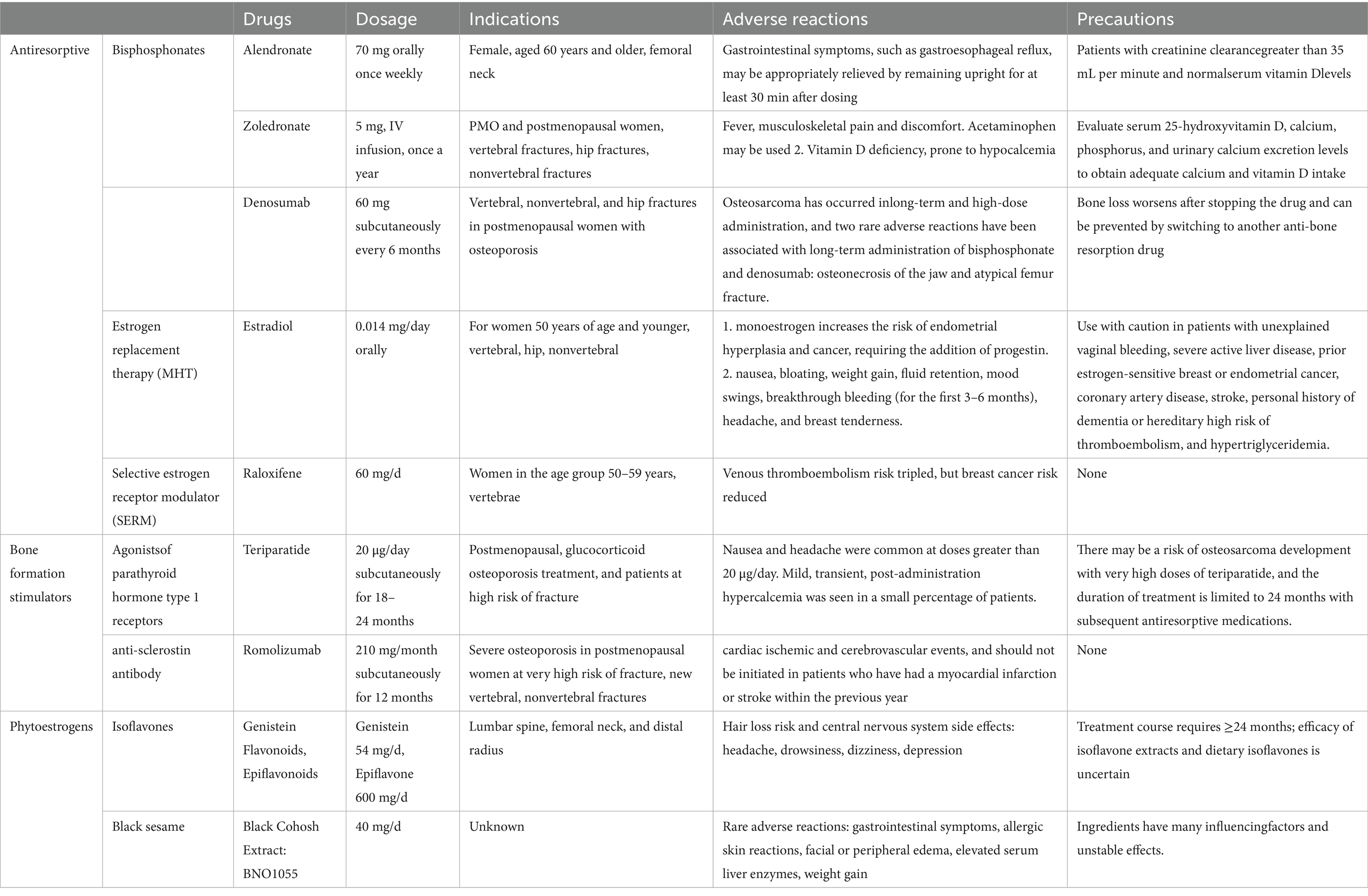 Citation: Lv H, Zhang Y, Li J, Jia Q, Yu Y, Tang H, Chen W, Yang Y, Jiang Q and Chen J (2025) Drugs against osteoporosis in perimenopausal and postmenopausal women. Front. Med. 12:1682333. doi: 10.3389/fmed.2025.1682333
