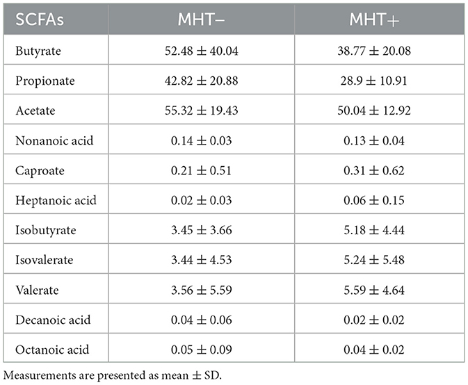 Table 4. Concentration of SCFAs in two groups (mg/L).