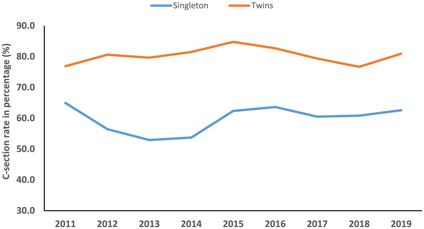 Secular trend of C-section among singleton and twin pregnancies (2011–2019)