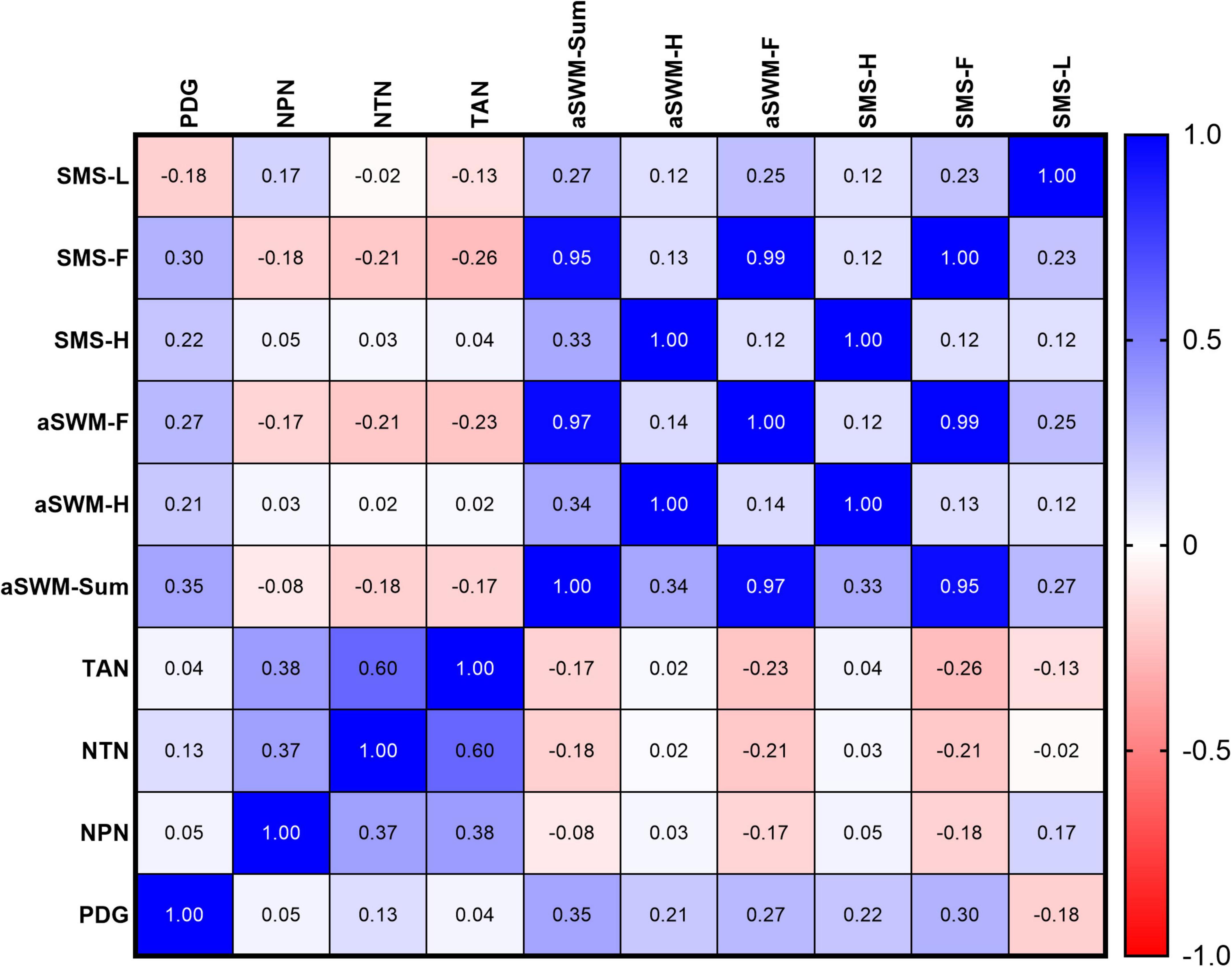 Figure 2. Spearman’s correlation analysis among the sensitive mapping score (SMS) of lesions, Semmes-Weinstein Monofilament (SWM) scores applied to hands and feet, number of altered nerves on palpation (pain and thickening), and Physical Disability Grade (PDG) at baseline. PDG, physical disability grade; NPN, Number of pained nerves on palpation; NTN, Number of thickened nerves on palpation; TAN, Total of Altered Nerves; aSWM, Sum of altered Semmes-Weinstein points; aSWM-H, Number of Semmes-Weinstein points altered on hands; aSWM-F, Number of Semmes-Weinstein points altered on feet; SMS-H, Sensitive Mapping Score applied on hands by SWM esthesiometry; SMS-F, Sensitive Mapping Score applied on feet by SWM esthesiometry; SMS-L, Sensitive Mapping Score on Lesion (average score by patients).