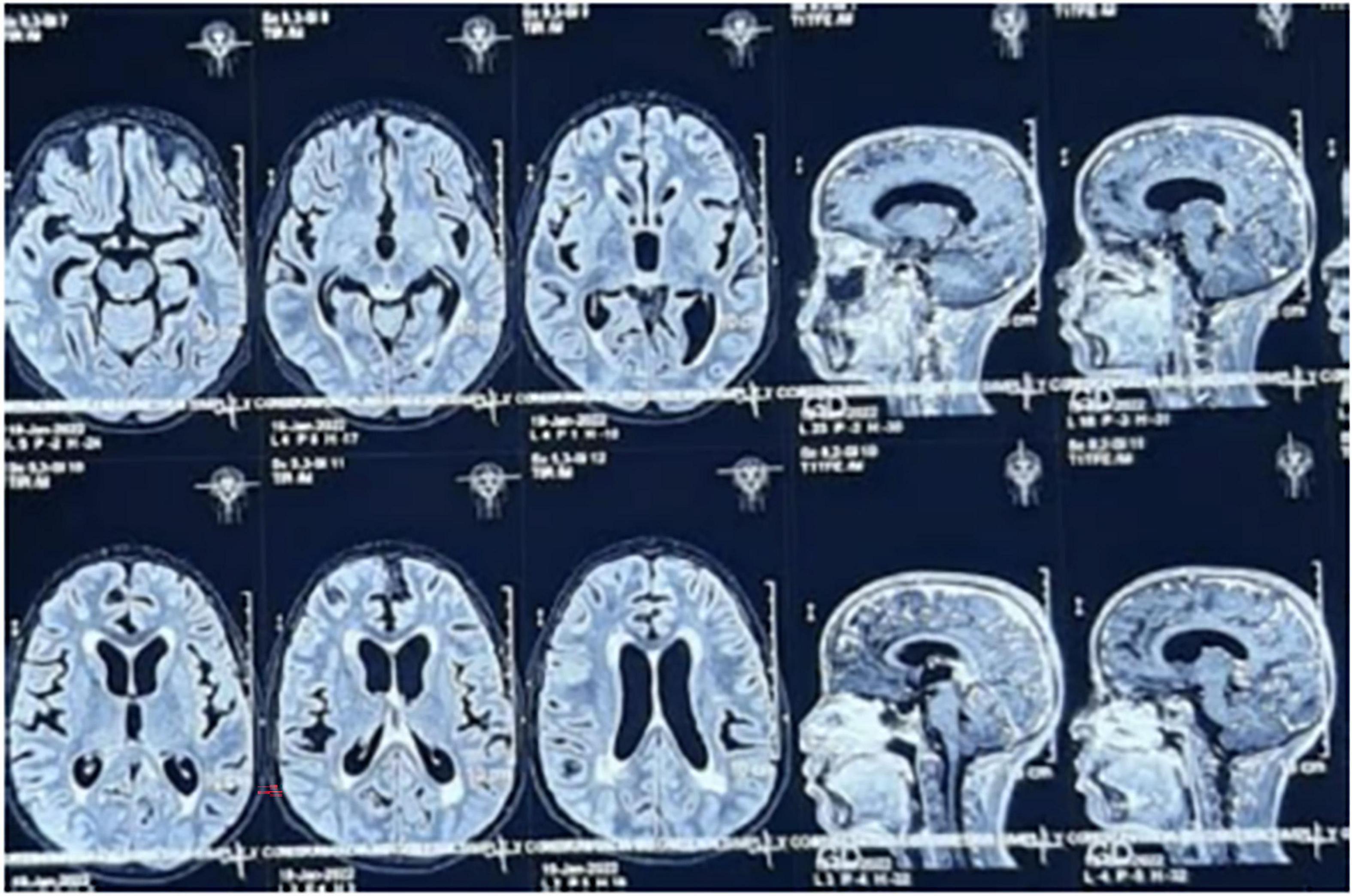 The exact timing and mode of HIV acquisition remain unknown, as the patient denied any history of needle sharing or intravenous drug use, and no history of sexual assault has been reported. There are no known cases of HIV infection within the patient’s family. In addition, the patient reports not being sexually active. Given the suspicion of a neuroinfection, the patient was subsequently referred to a tertiary care center for specialized management. It is important to note that, as neither the patient nor his legal guardians were previously aware of the HIV infection, the patient was not receiving any form of antiretroviral therapy at the time of admission (Viral load: 4050).