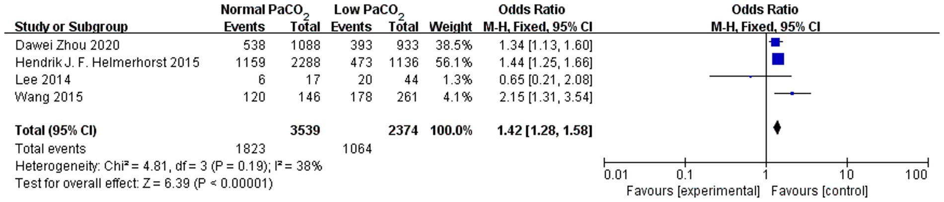 Figure 3. Forest plot of the comparison of mild-term mortality between the normocapnia group and the hypocapnia group.