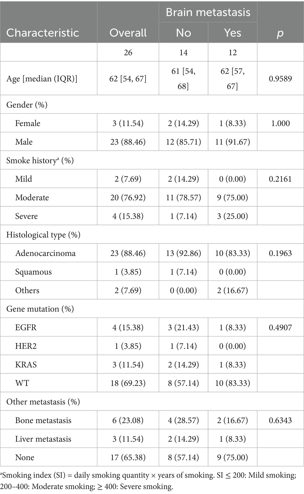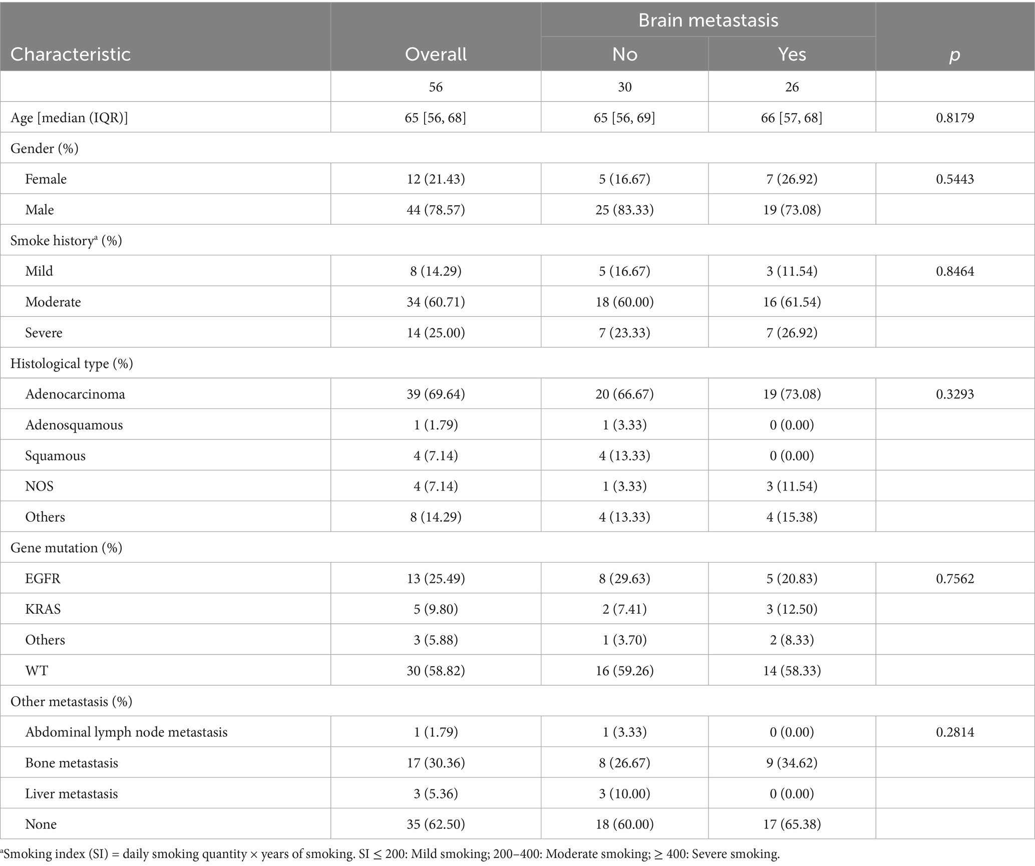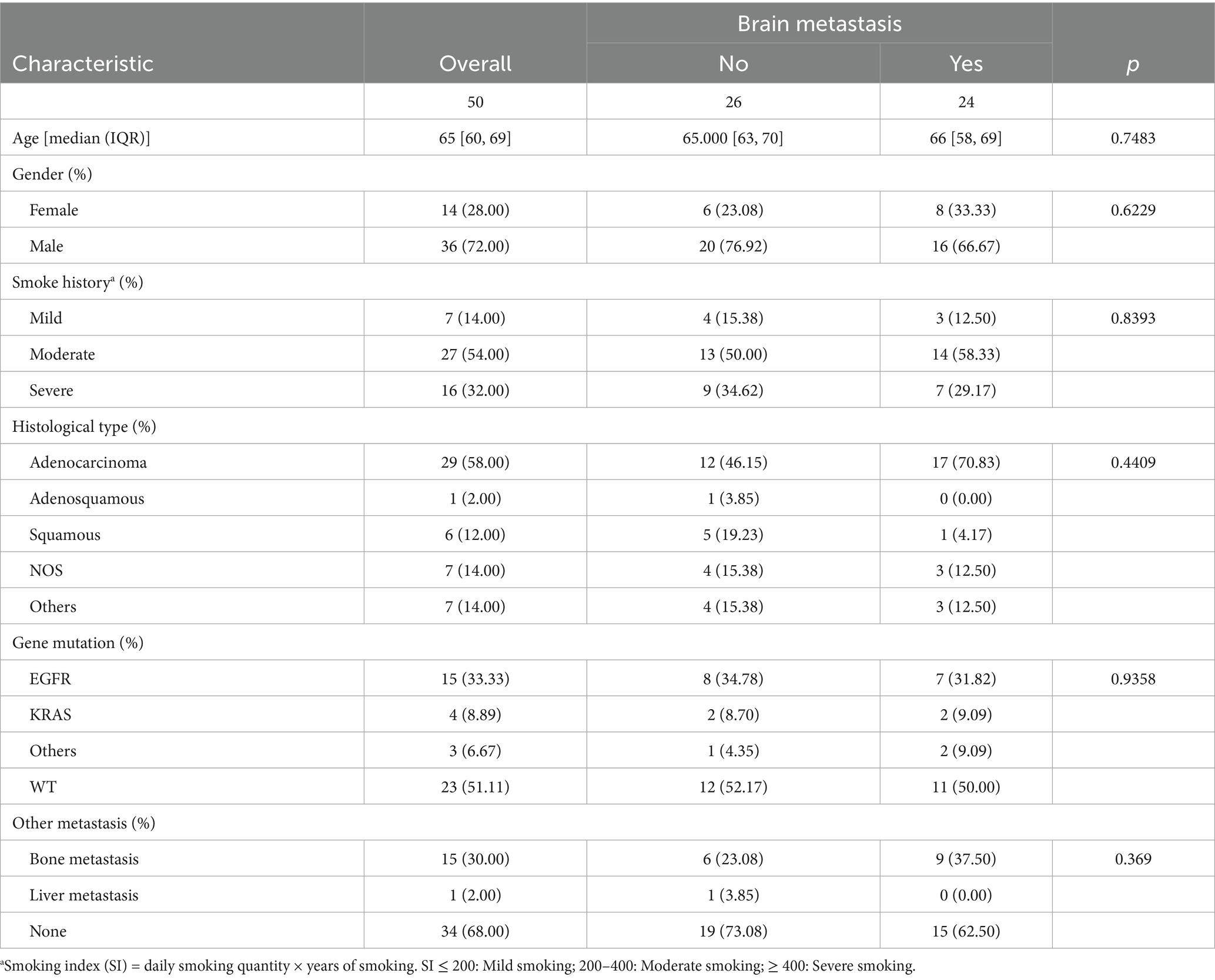 The incidence of brain metastases originating from lung cancer is substantial, and the therapeutic outcomes are often unsatisfactory, leading to significant clinical challenges. At present, exclusively clinical and pathological factors serve to forecast the likelihood of brain metastasis in lung cancer patients. Yet, the existing data on these predictive parameters are inconsistent and lack clinical applicability. Solely relying on conventional clinical and pathological indicators, such as primary tumor status, tumor histology, lymph node status, and patient age, as their risk ratio is small and prognostic factors are unknown (8). There is an urgent need for a more reliable approach to ascertain which patients face the risk of brain metastasis development.