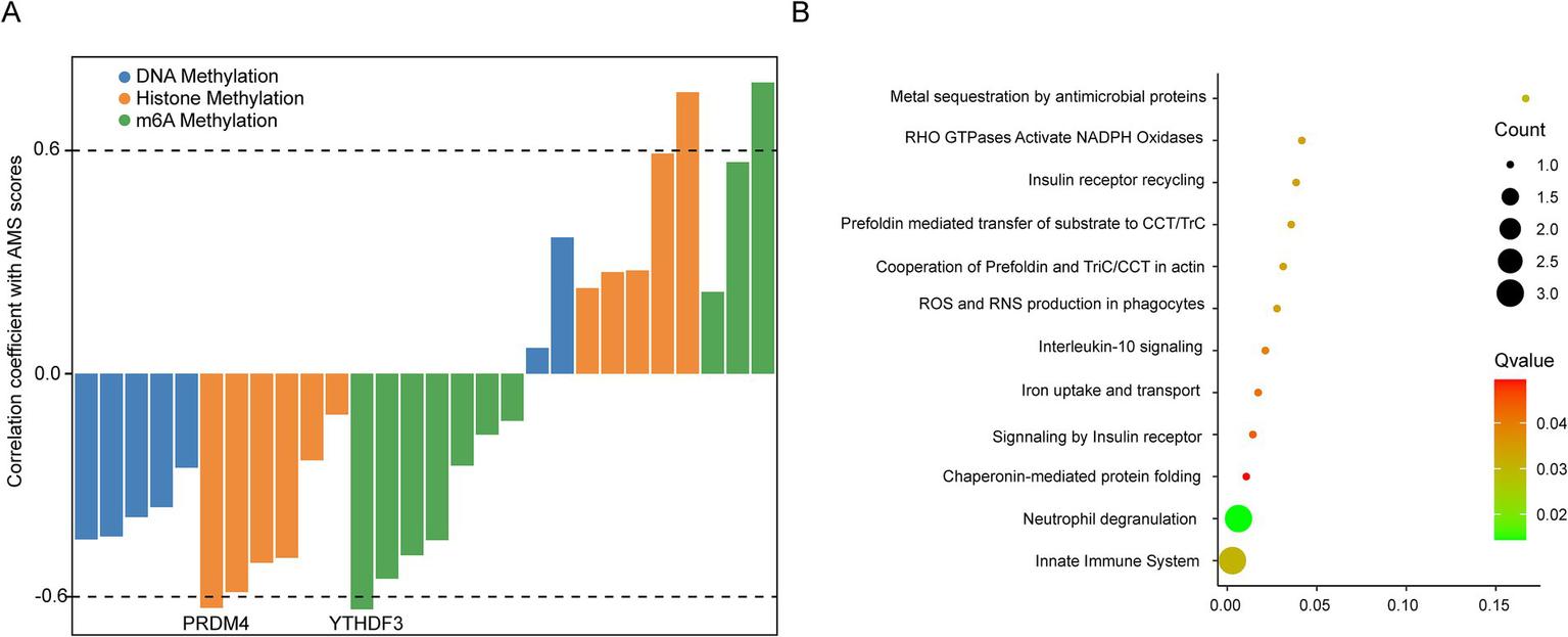 We applied scRNA-seq (n = 10) and bulk RNA-seq (n = 192) to identify AMS-associated genes. Then, we constructed AMS diagnostic model by machine learning. We also assessed the expression levels of AMS-related gene signatures using Quantitative PCR. Finally, we explored the mechanism of AMS-associated signatures by epigenetic analyses and KEGG pathway enrichment.