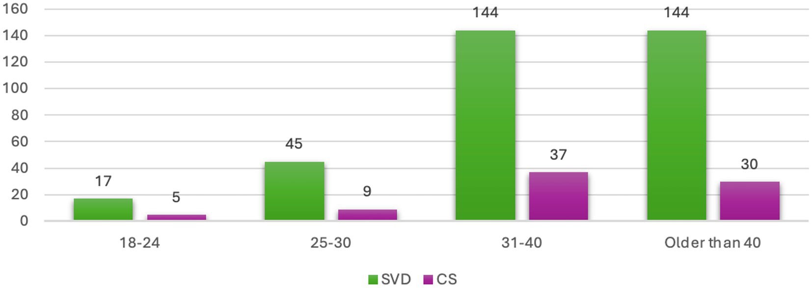 Specific demographic factors were analyzed to evaluate their impact on delivery preferences. Age was found not to be a significant factor in determining the preferred mode of delivery in our study. This result aligns with a previous study conducted in Saudi Arabia, which also found no correlation between age and delivery preference (24). However, a study in Poland reported that older women were more likely to prefer cesarean delivery, with a mean age difference of 1.25 years between those opting for CS and SVD (25).