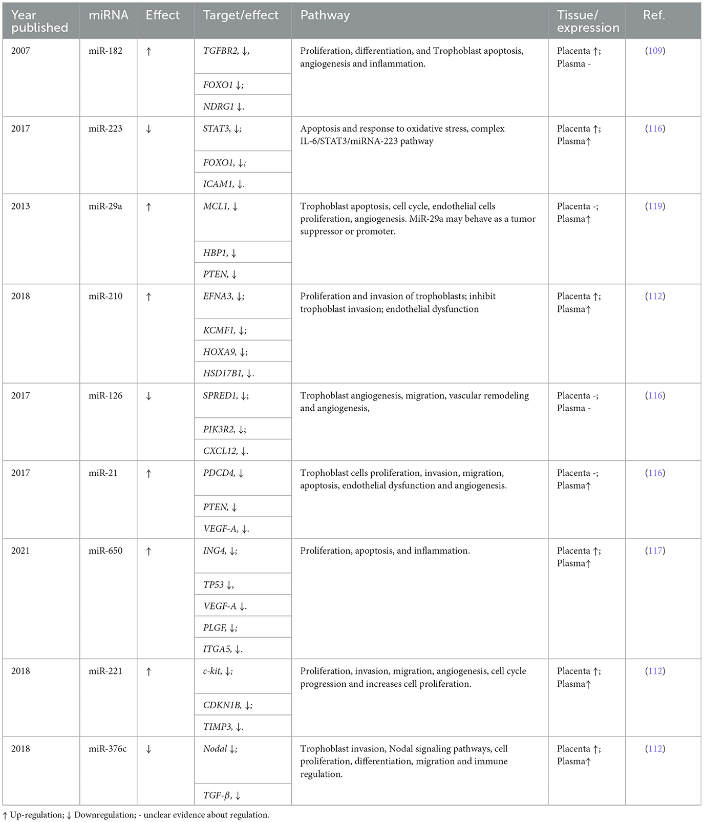 116. Jairajpuri DS, Malalla ZH, Mahmood N, Almawi WY. Circulating microRNA expression as predictor of preeclampsia and its severity. Gene. (2017) 627:543–8. doi: 10.1016/j.gene.2017.07.010