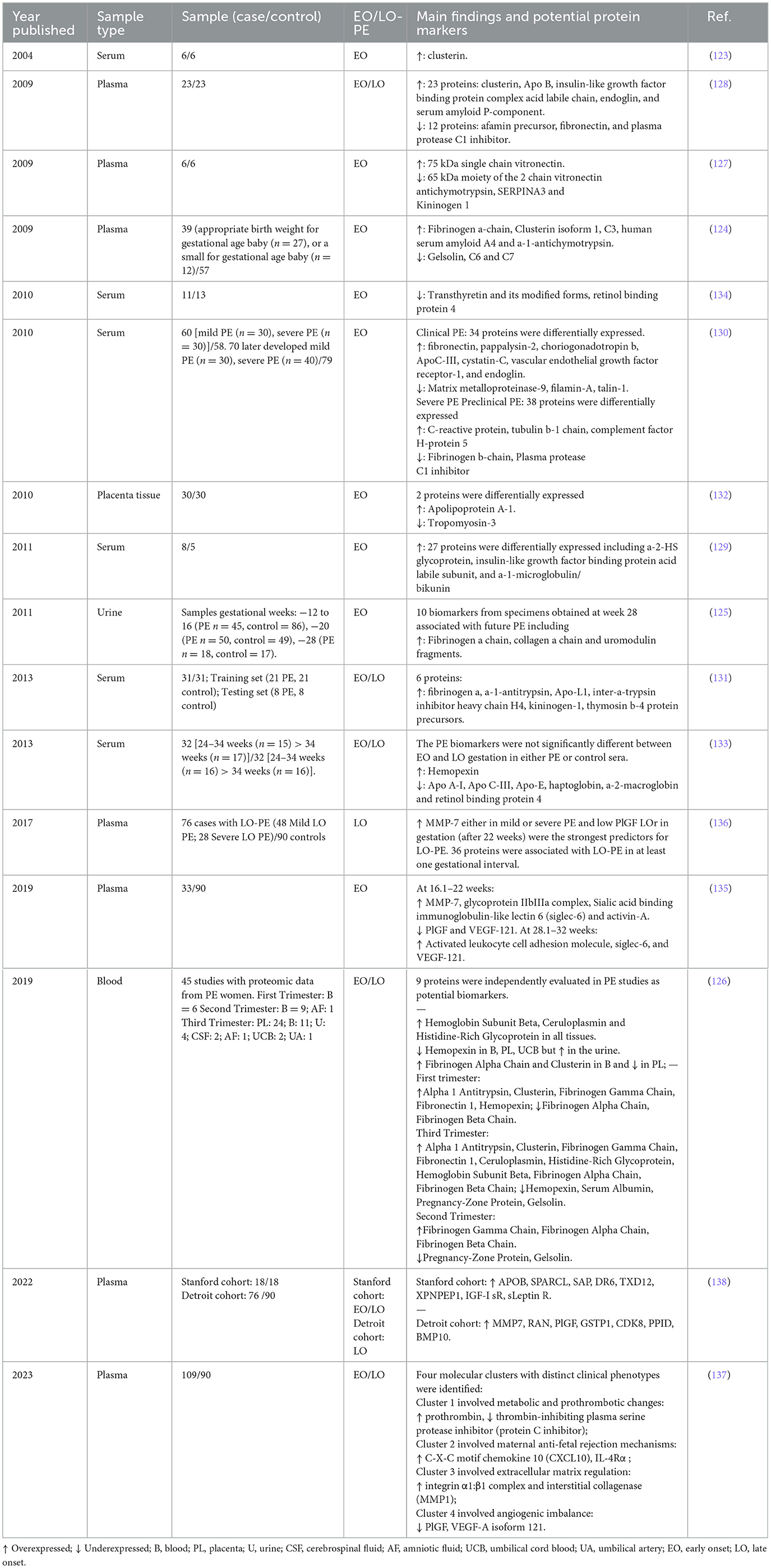 126. Nguyen TPH, Patrick CJ, Parry LJ, Familari M. Using proteomics to advance the search for potential biomarkers for preeclampsia: a systematic review and meta-analysis. PLoS ONE. (2019) 14:e0214671. doi: 10.1371/journal.pone.0214671