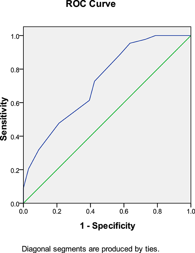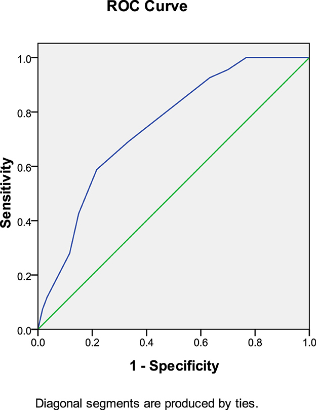 In the warfarin group, anticoagulant initiation time predicted thrombolysis at 30 days after anticoagulation therapy (AUC: 0.726, 95% CI: 0.612–0.840, P = 0.001). The Youden index was 0.591, and an anticoagulation initiation time of <8.5 days produced the most favorable therapeutic effect (Figure 4).