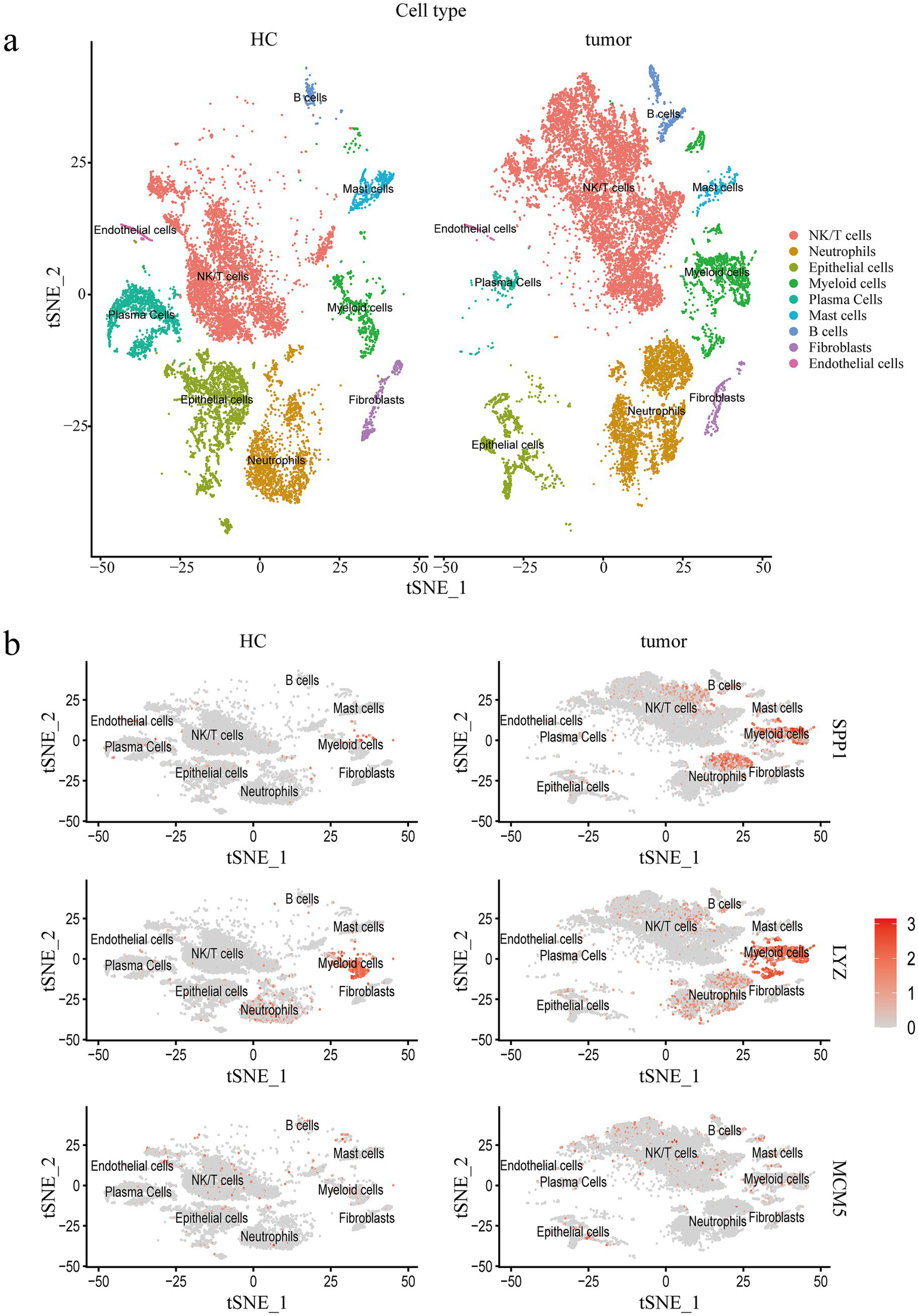 3.6 Expression patterns of SPP1, LYZ and MCM5 in scRNA-seq