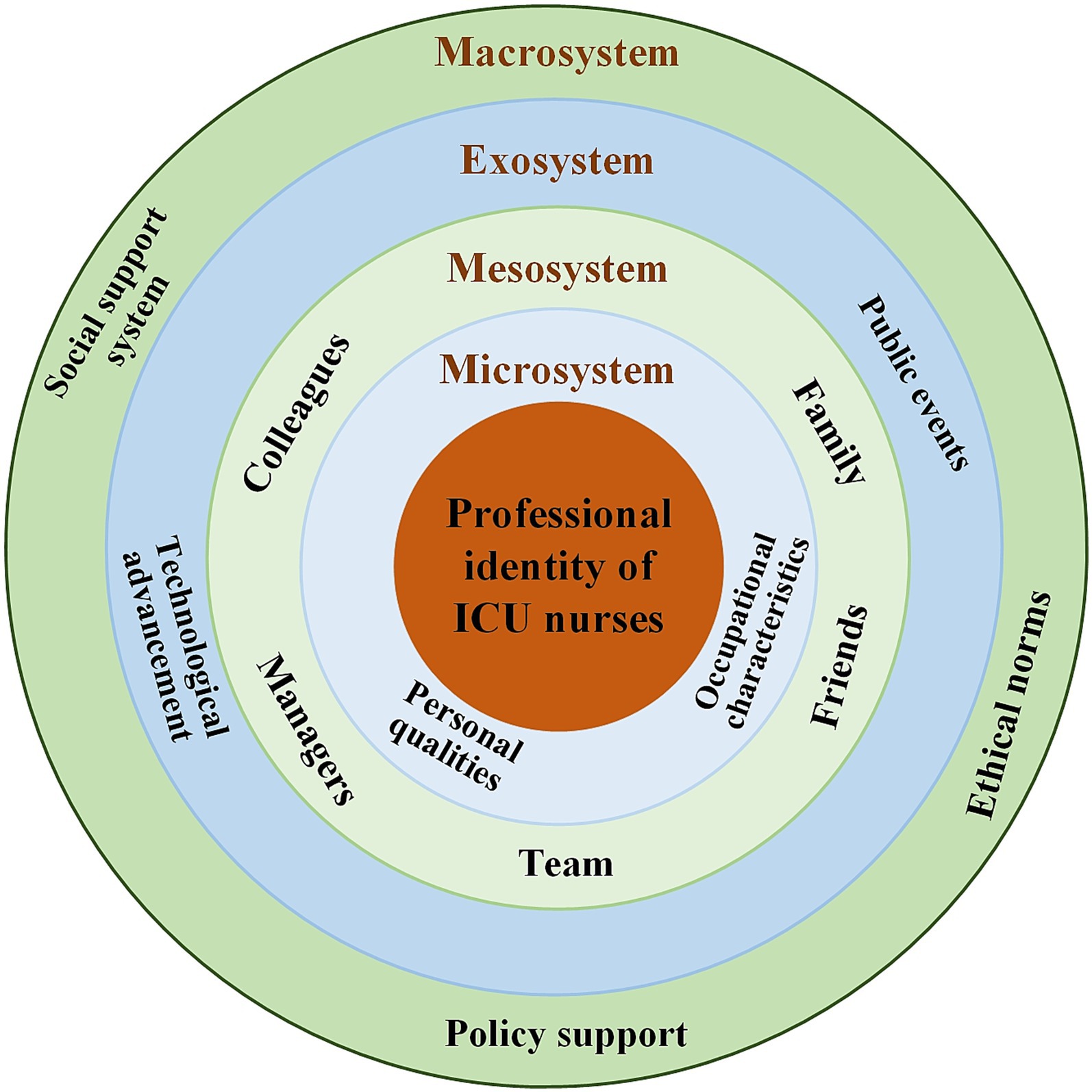 Guided by the EST, this study aims to conceptualize ICU nurses’ professional identity as the outcome of interactions across multiple environmental levels, including the individual, family, work environment, organizational, and cultural systems. Through semi-structured interviews and framework-oriented coding analysis, the study seeks to identify factors influencing the formation and development of nurses’ professional identity, while providing both theoretical foundations and practical insights for enhancing professional identity and supporting career development.