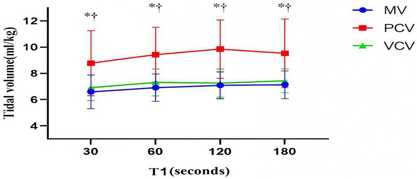 All the statistical data were analyzed via SPSS software version 23.0(IBM Corporation, Armonk, New York, United States). The study had three different modes of ventilation. Data at each time point with a normal distribution and equal variance were compared via one-way analysis of variance (ANOVA) with the Bonferroni post hoc correction. For continuous variables with two or more nonnormally distributed variables in multiple groups, the Kruskal–Wallis test was used to compare multiple groups. Comparisons of variables over different time points within groups were accomplished via repeated-measures ANOVA or the Friedman test on the basis of the normality of the variable’s distribution. Statistical significance in the evaluation was determined by a p value less than 0.05. Nevertheless, a correction of multiple comparisons was conducted.