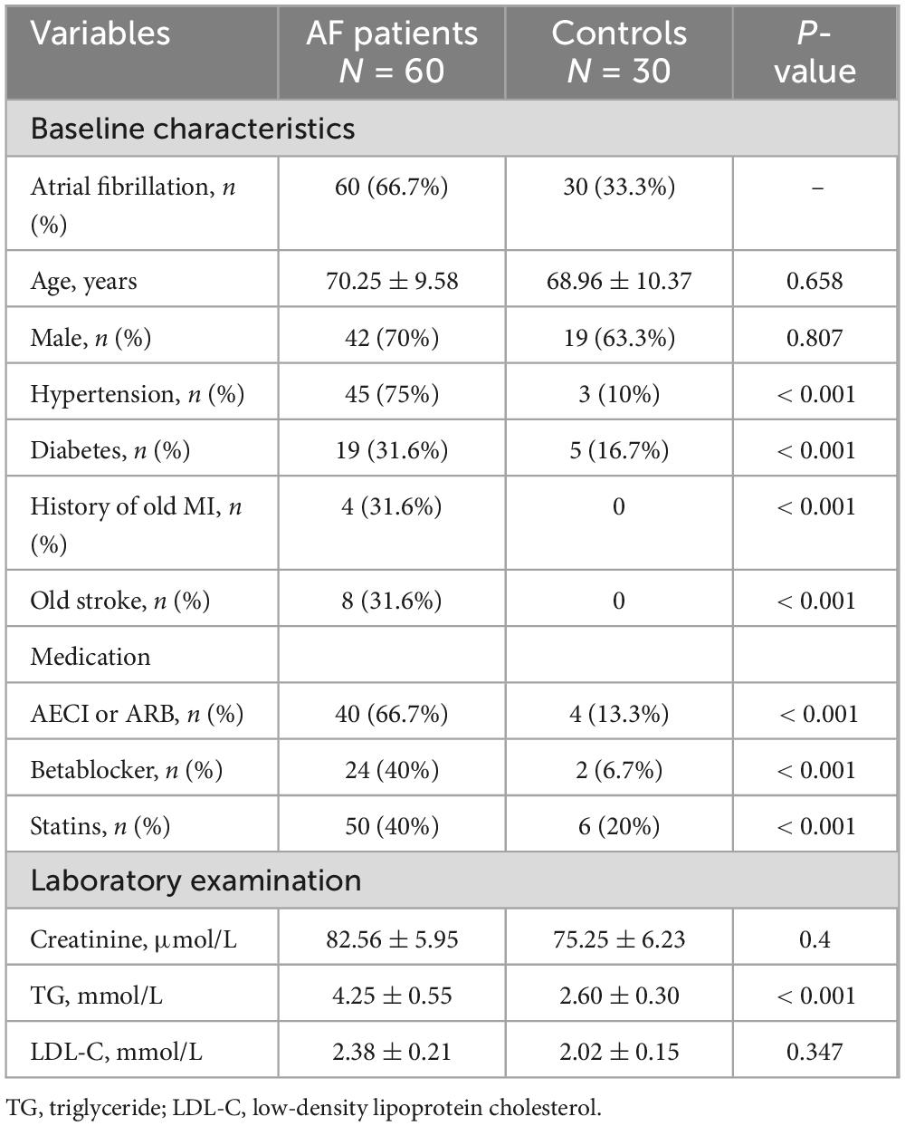 2.5 Baseline characteristics of the AF patients and control