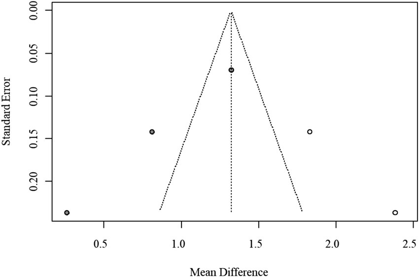 Publication bias was evaluated using funnel plots and Egger’s regression test. When asymmetry was detected, the trim-and-fill method was applied as an exploratory adjustment.