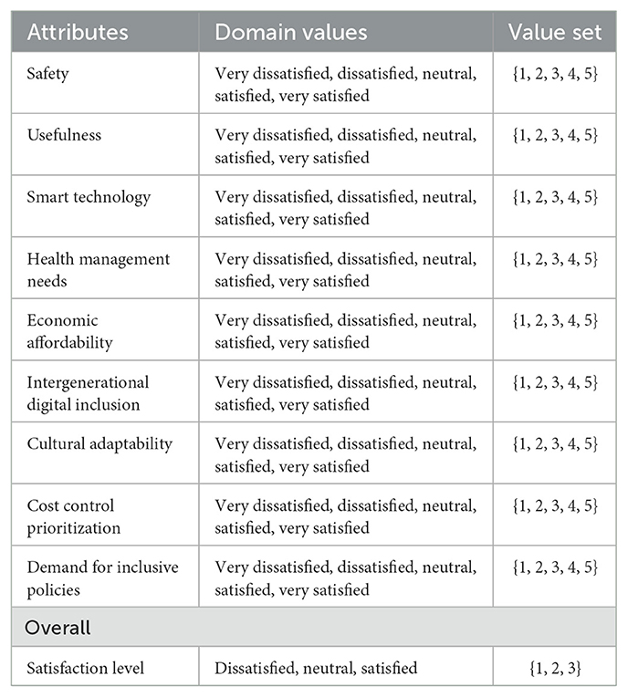 Beyond the insights offered by methods such as KANO, DEMATEL, and fsQCA, the configurational analysis in this study makes several distinctive theoretical contributions. KANO and DEMATEL have advanced understanding by identifying asymmetric effects and inter-factor influences but typically examine factors in isolation or through pairwise relations (14). Likewise, fsQCA uncovers multiple causal pathways, yet most applications focus on a narrow set of conditions and rarely integrate user needs, product attributes, environmental constraints, and policy contexts within a single analytical framework (15). In contrast, this study first established a multidimensional framework through literature review and FDM, then used RSA with user data to reveal how these antecedents interact to form satisfaction and dissatisfaction pathways. This approach captures situated conditional combinations, clarifies causal asymmetry, and expands the theoretical understanding of user-context interactions.