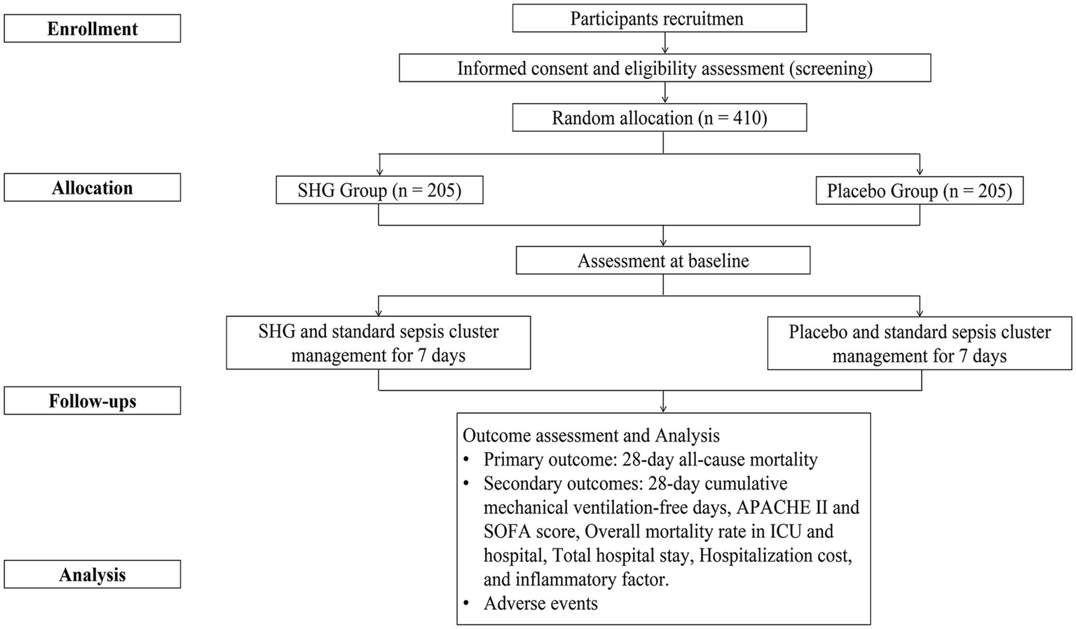 This trial represents the first multi-center randomized controlled study in China evaluating the effect of SHG on patients with sepsis. The findings are expected to provide robust evidence regarding the efficacy and safety of SHG in sepsis management, offering evidence-based recommendations for clinical practice.