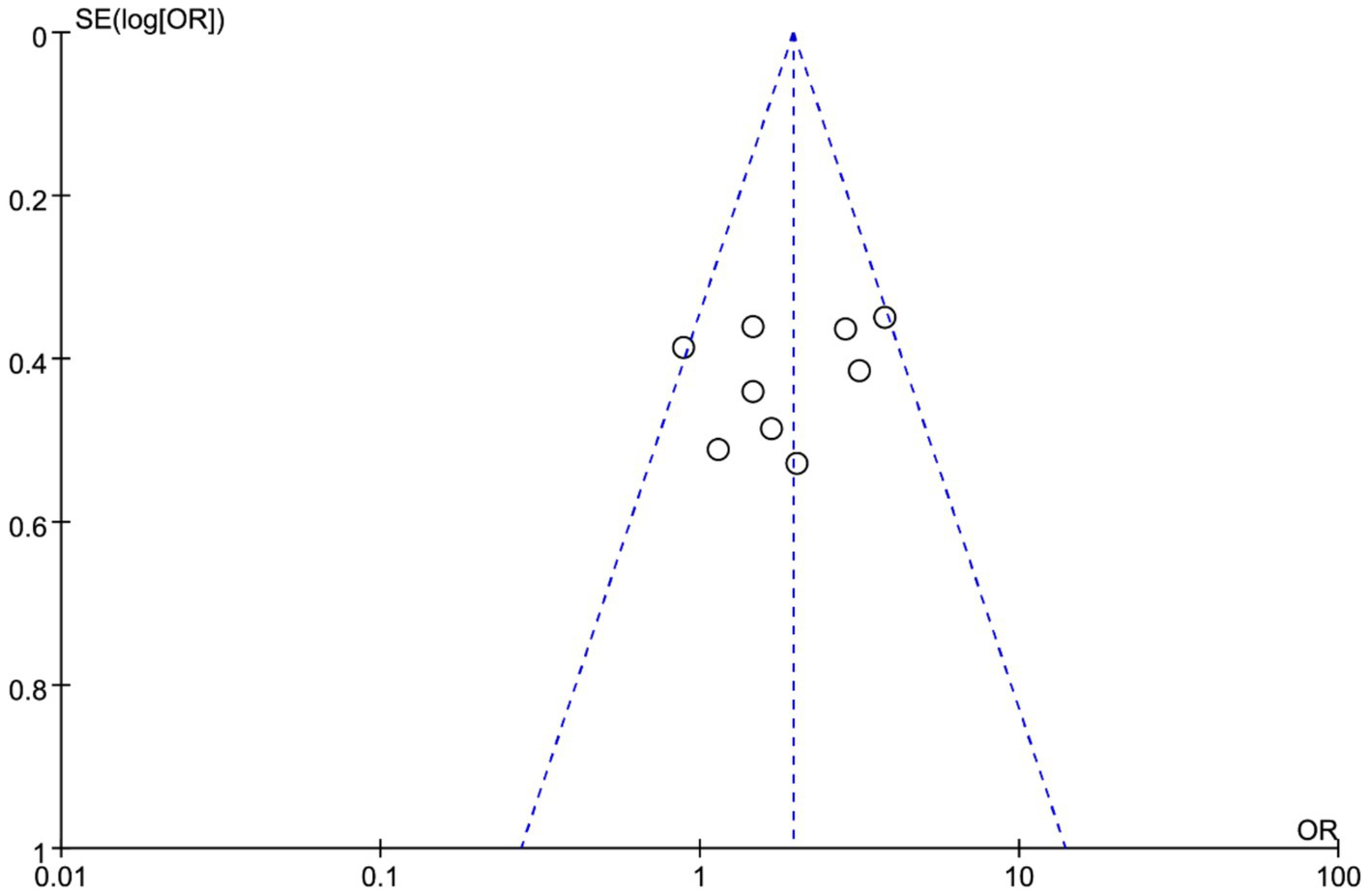 ![Forest plot showing odds ratios comparing experimental and control groups across nine studies. Each study's odds ratio is represented by a square, with horizontal lines indicating the 95% confidence intervals. The overall effect is summarized at the bottom with a diamond. The x-axis is logarithmic, ranging from 0.01 to 100. Total events were 431 in the experimental group and 334 in the control group. The overall odds ratio is 4.00 with a 95% confidence interval of [2.72, 5.88], indicating statistical significance.](https://www.frontiersin.org/files/Articles/1702512/xml-images/fmed-12-1702512-g003.webp)