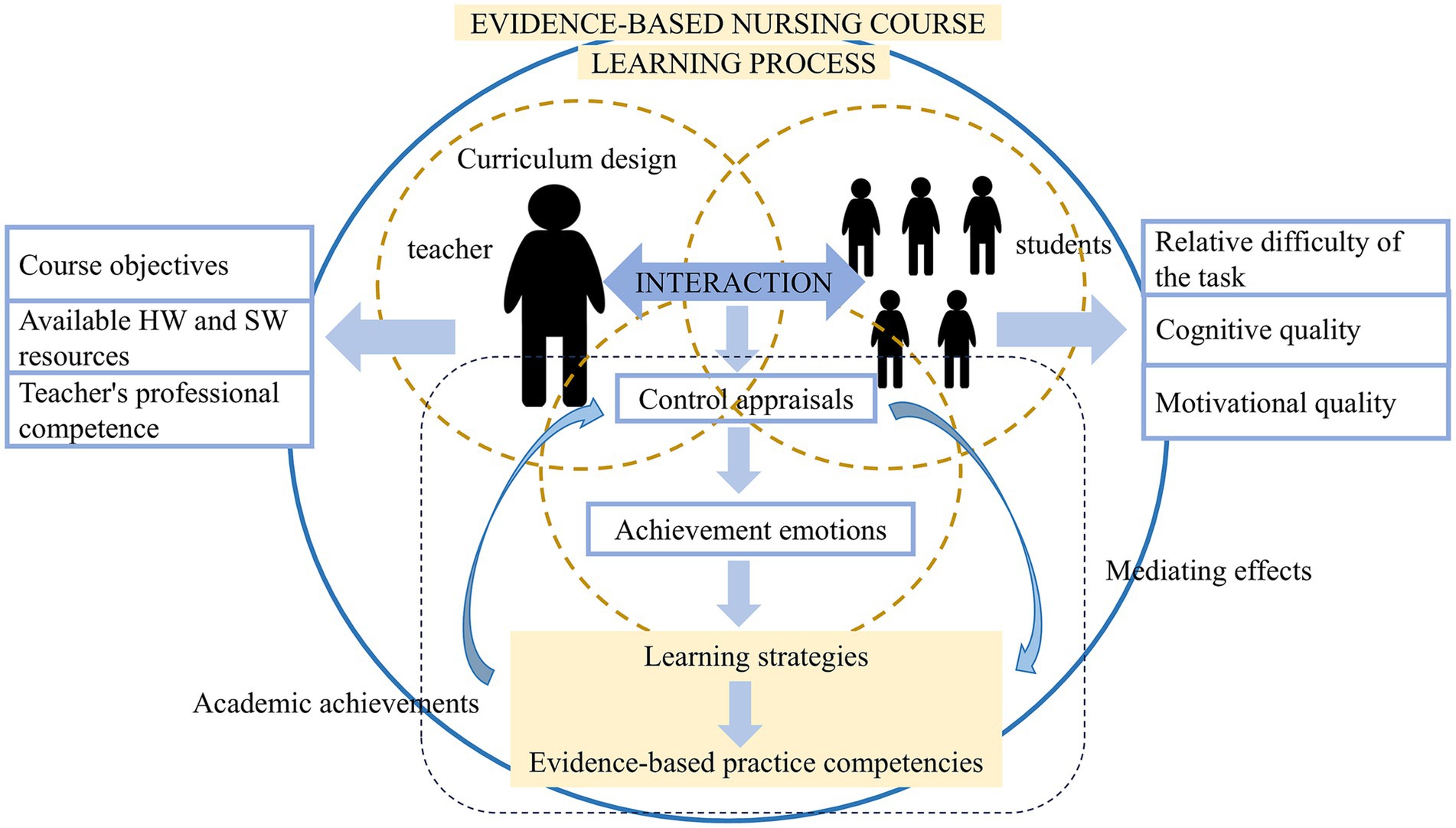 Hypothesis 4. In the learning environment of an evidence-based nursing curriculum where the instructional model is applied, achievement emotions mediate the relationship between control appraisals and both learning strategies and evidence-based practice competencies.
