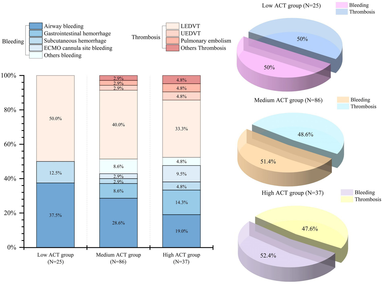 Since in our ECMO center, anticoagulation monitoring methods such as activated partial thromboplastin time (APTT) cannot be performed at the bedside, ACT monitoring remains the primary method for bedside monitoring of UFH therapy. Drawing on our experience in ACT-based anticoagulation management, we have retrospectively reviewed relevant clinical data on ACT-guided anticoagulation for ECMO at our center, and we believe these findings may provide valuable references for clinical ECMO anticoagulation management.
