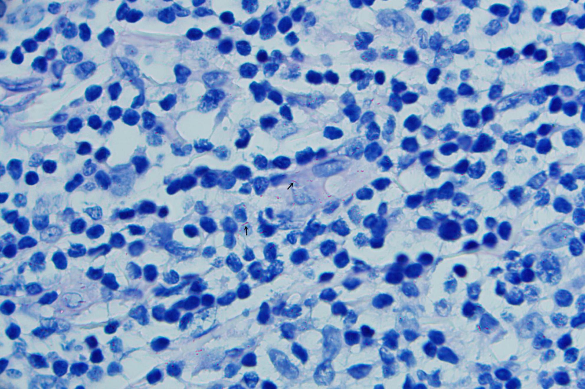Cutaneous infection caused by non-tuberculous mycobacteria (NTM), especially Mycobacterium marinum (a waterborne species), appear to be increasing in incidence (1). The diagnosis of NTM cutaneous infection requires the detection of acid-fast bacilli by microscopy, culture, and/or PCR on skin fluid or tissue biopsy specimens (2). Early identification is crucial, as many empirical antibiotic regimens are ineffective against NTM disease (3). However, the diagnosis of NTM cutaneous infections presents a considerable challenge for resource-limited settings (RLS).