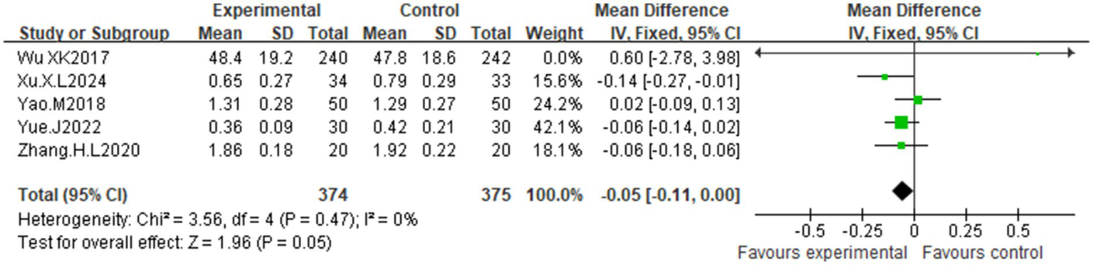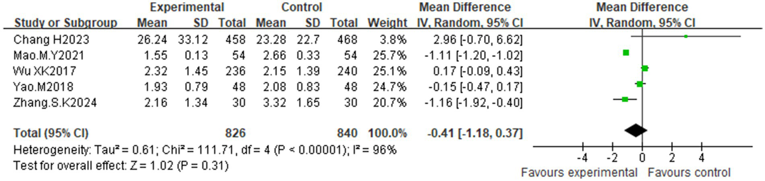 | Xu X. L. 2024 (32) | Guanyuan CV4, Zhongji CV3, Uterus EX-CA1, Sanyinjiao SP6, Tianshu ST25, Zhongkou CV12, Ashansanli ST36, Fenglong ST40, Liver BL18, Taichong LR3 | MA | RNS 3 day, Qod, Tow |