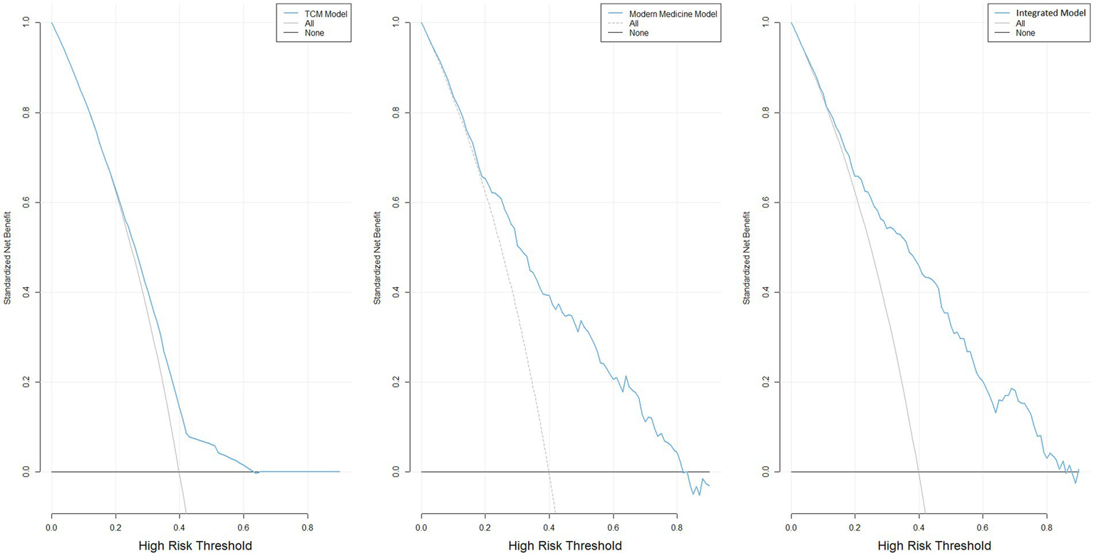 After internal validation, the modern medicine model showed the most stable predictive performance. The integrative model mainly contributed to exploring the potential informational value of TCM variables in infertility risk stratification rather than improving predictive accuracy. These findings provide methodological support for infertility risk assessment within an integrative Chinese and Western medicine framework.