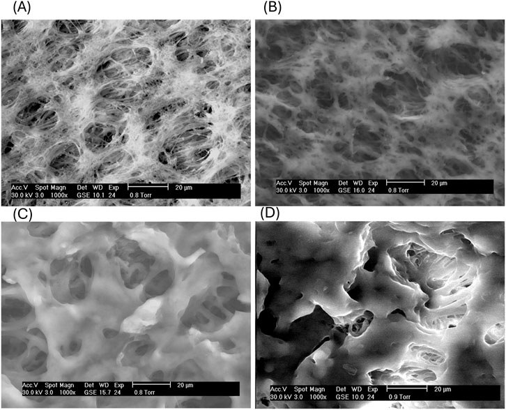 Fourier transform infrared (FTIR) spectroscopy (SHIMADZU QATR, Shimadzu, Columbia, MD, United States) was used to determine changes in surface chemical groups as a result of surface modification. Scanning electron microscopy (SEM) (FEI XL-30, Phillips, Cambridge, MA, United States) was used to determine change in surface pore structure due to surface modification.