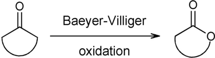 The oxidation of ketones is known in organic chemistry as Baeyer-Villiger oxidation (Baeyer and Villiger, 1899). This reaction involves peracids or hydrogen peroxide to achieve the oxidation of ketones to esters or lactones. Chiral lactones are valuable intermediates toward the synthesis of natural products and analogs (reviewed in de Gonzalo et al., 2010). For Baeyer-Villiger oxidations, the enzyme-mediated transformation has become the preferred method due to its high enantio-, regio-, and chemoselectivity. Besides, the process takes place in environmentally friendly conditions, avoids the use of toxic reagents, and allows scale-up. The ability of some microorganisms to grow in a certain alcohol or ketone grabbed the attention to the enzymes involved in those metabolic routes and prompted the discovery of Baeyer-Villiger monooxygenases (BVMOs). An increasing number of BVMOs have been identified, cloned, recombinantly expressed, engineered and used for biocatalysis. This topic has been the matter of very comprehensive revisions during the last 5 years (de Gonzalo et al., 2010; Torres Pazmiño et al., 2010a; Leisch et al., 2011; Balke et al., 2012), hence the present section focuses mainly on the strategies used to overcome gene expression problems and cofactor regeneration limitations, scale-up and a summary of the most recent applications.