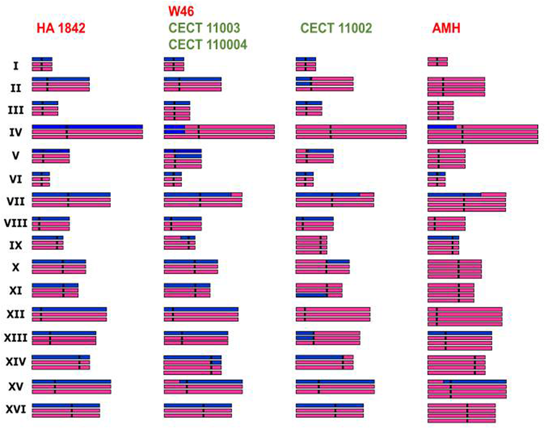 The analysis of chromosomal DNA by pulse field gel electrophoresis (PFGE) has revealed important chromosome length polymorphisms in yeasts (Bidenne et al., 1992; Querol et al., 1992; Schütz and Gafner, 1994; Nadal et al., 1999). These polymorphisms are due to GCRs, such as translocations, inversions, duplications, and deletions of large chromosomal regions.