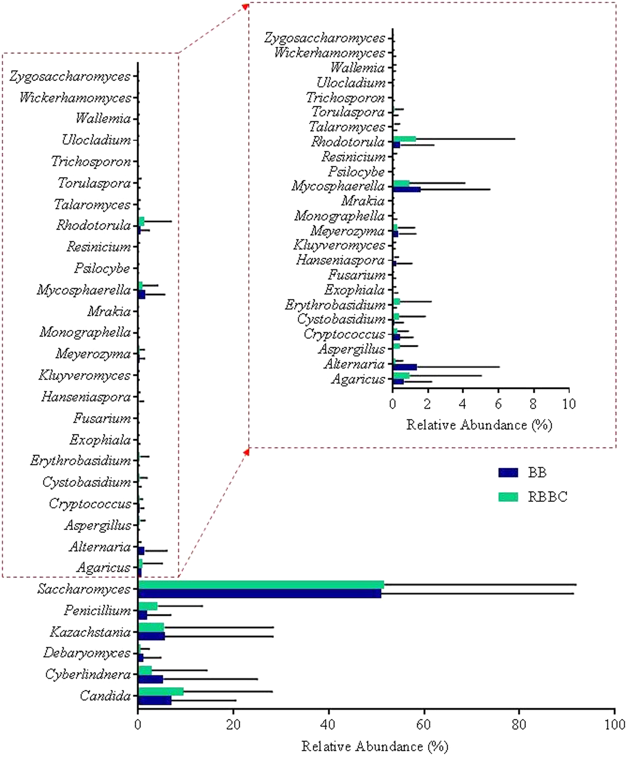 | ITS1F and ITS4 | CTTGGTCATTTAGAGGAAGTAA | TCCTCCGCTTATTGATATGC | Entire ITS | PCR products from 1/6 BB, 1/6 LYT, and 3/6 RBBC samples | White et al., 1990; Gardes and Bruns, 1993 |