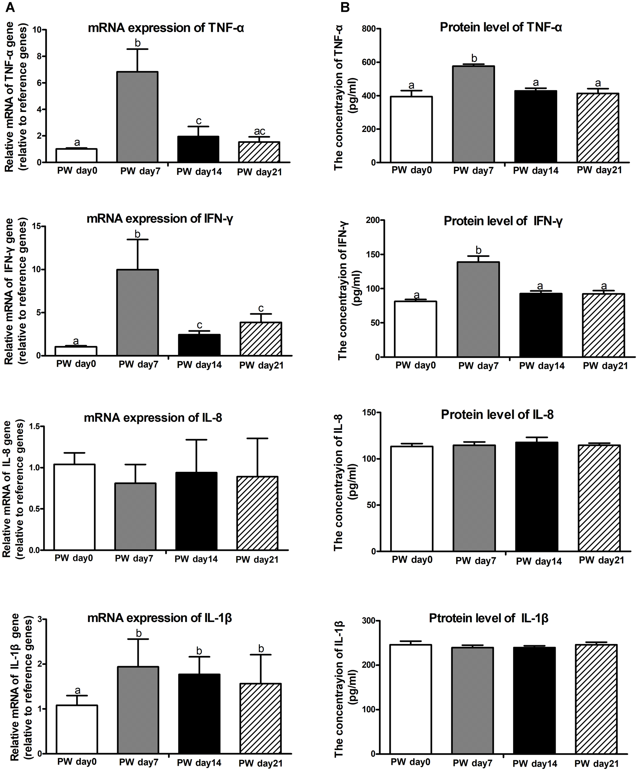 | PW day 0 | PW day 7 | PW day 14 | PW day 21 | P-value | |
