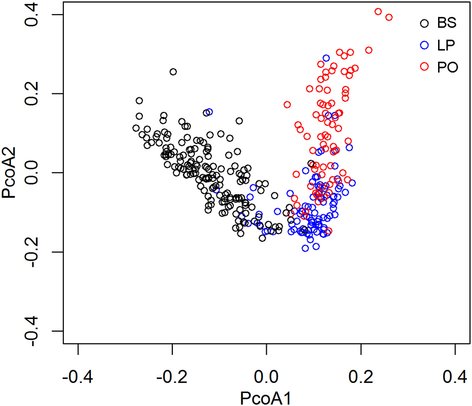 Comparison of the Diversity and Composition of Fecal Microbiota in LP, PO, and Barren States