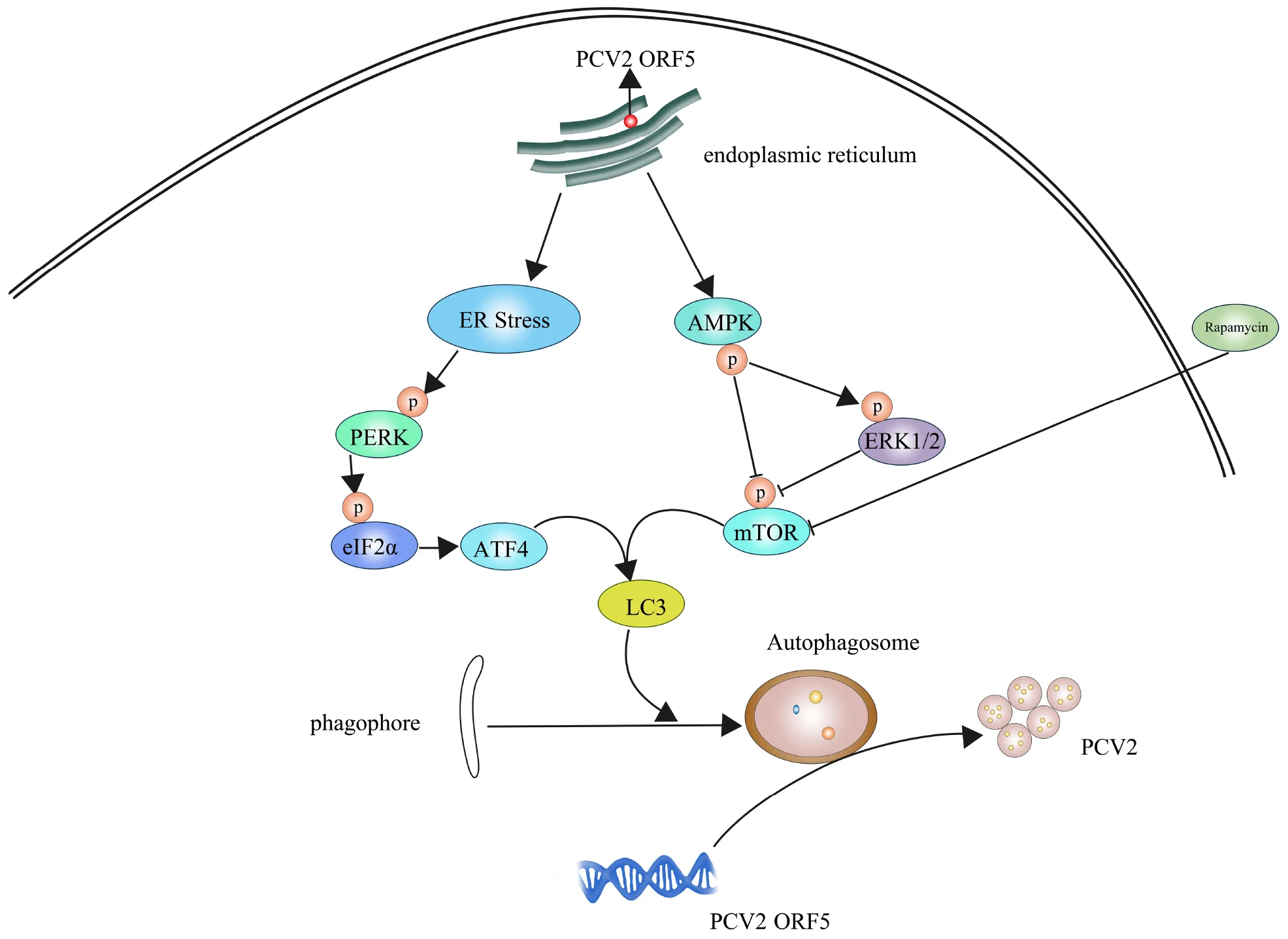 PCV2 ORF5 inducing autophagy to promote PCV2 replication.
