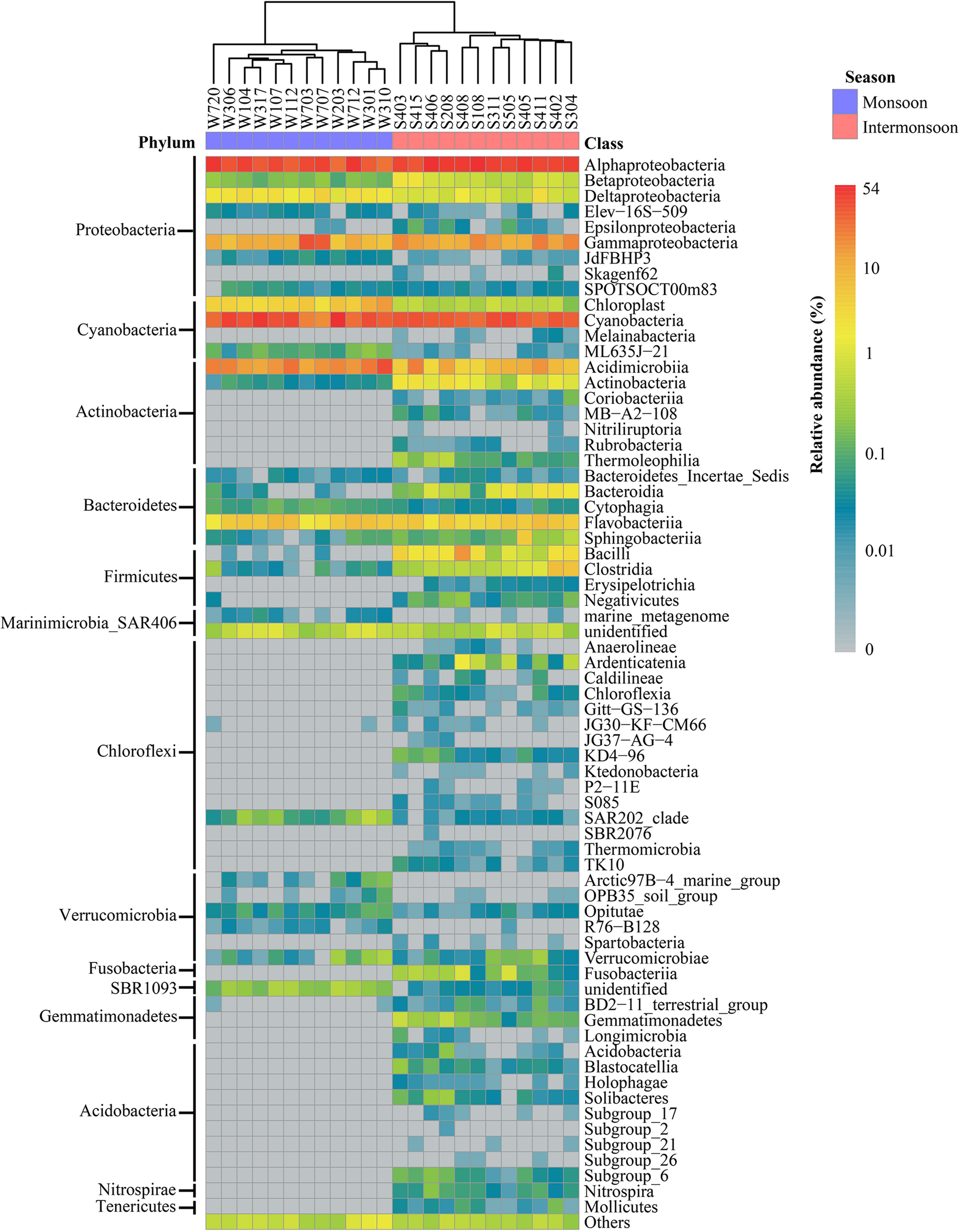 Bacterial community composition at class level in the Eastern India Ocean (EIO) in the monsoon and intermonsoon.