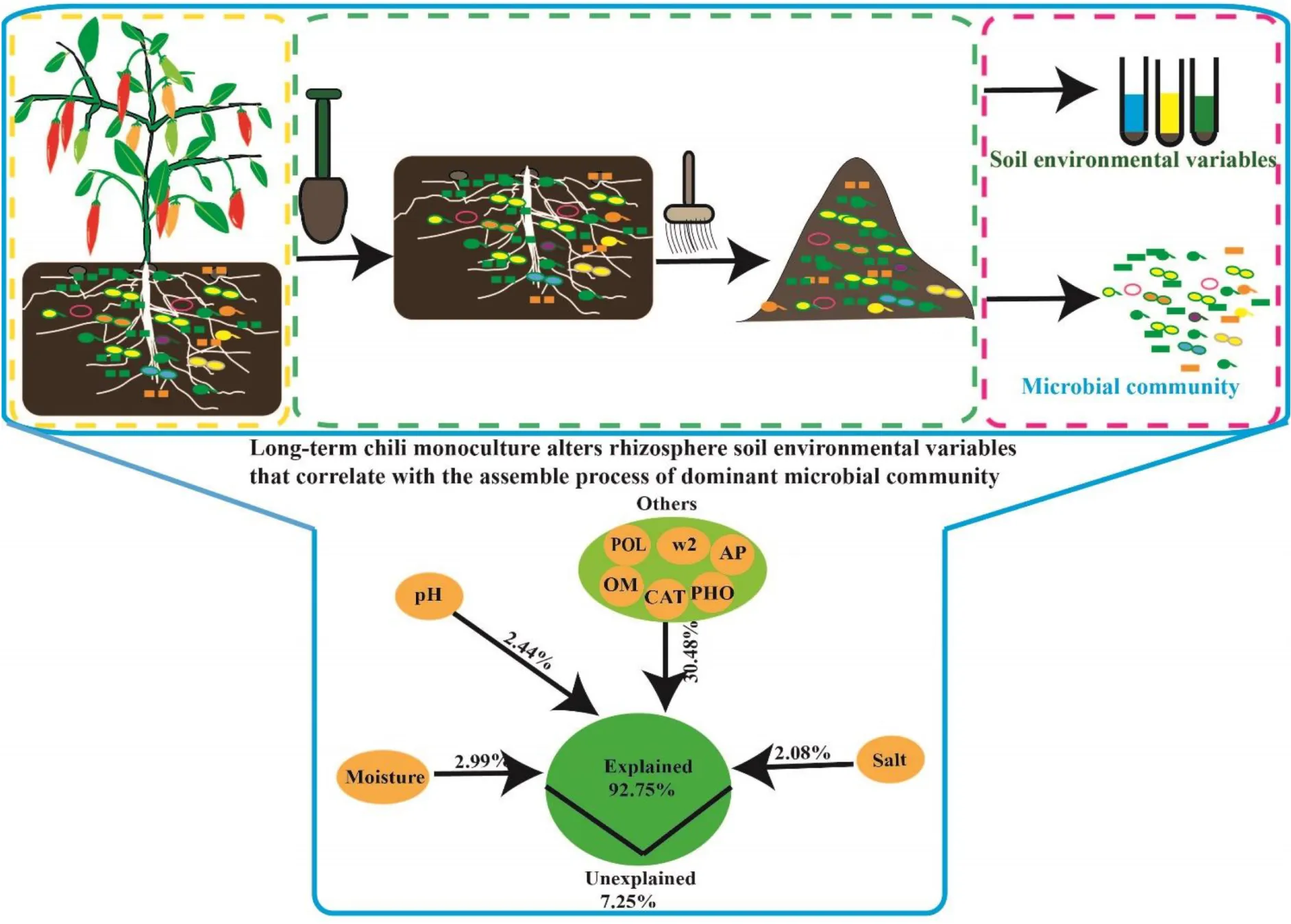 Long-term chili monoculture alters environmental variables affecting the dominant microbial community in rhizosphere soil.