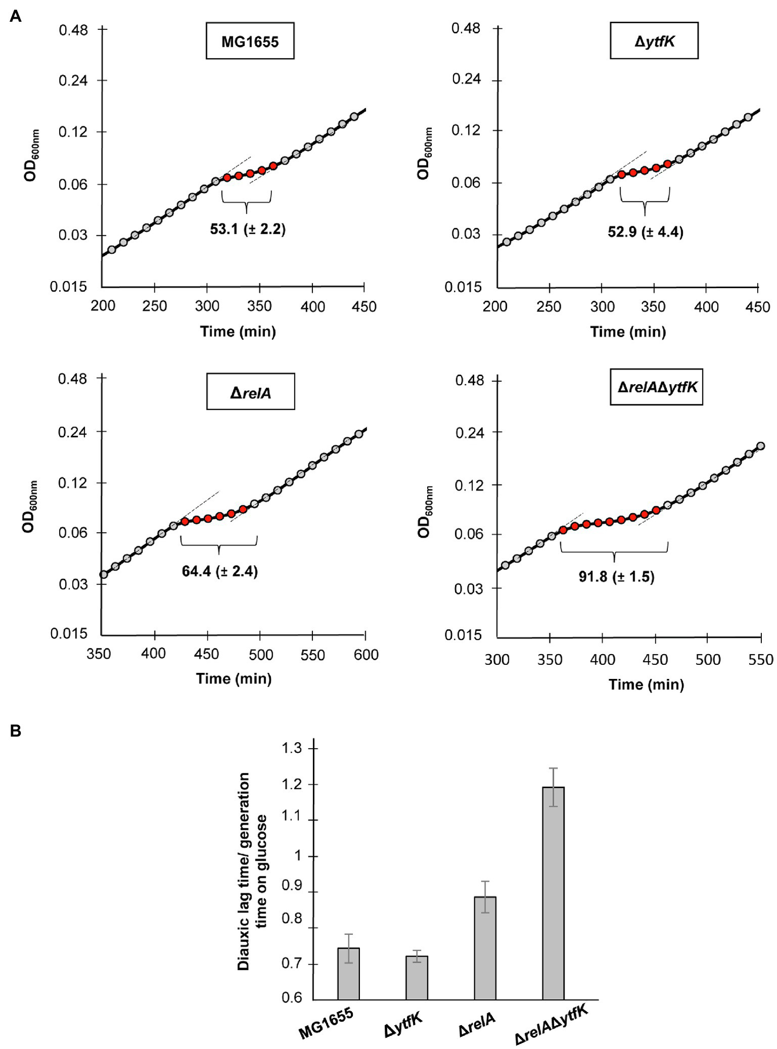 Taken together, our results support that the cAMP-CRP complex is required to regulate ytfK transcription in response to glucose availability.