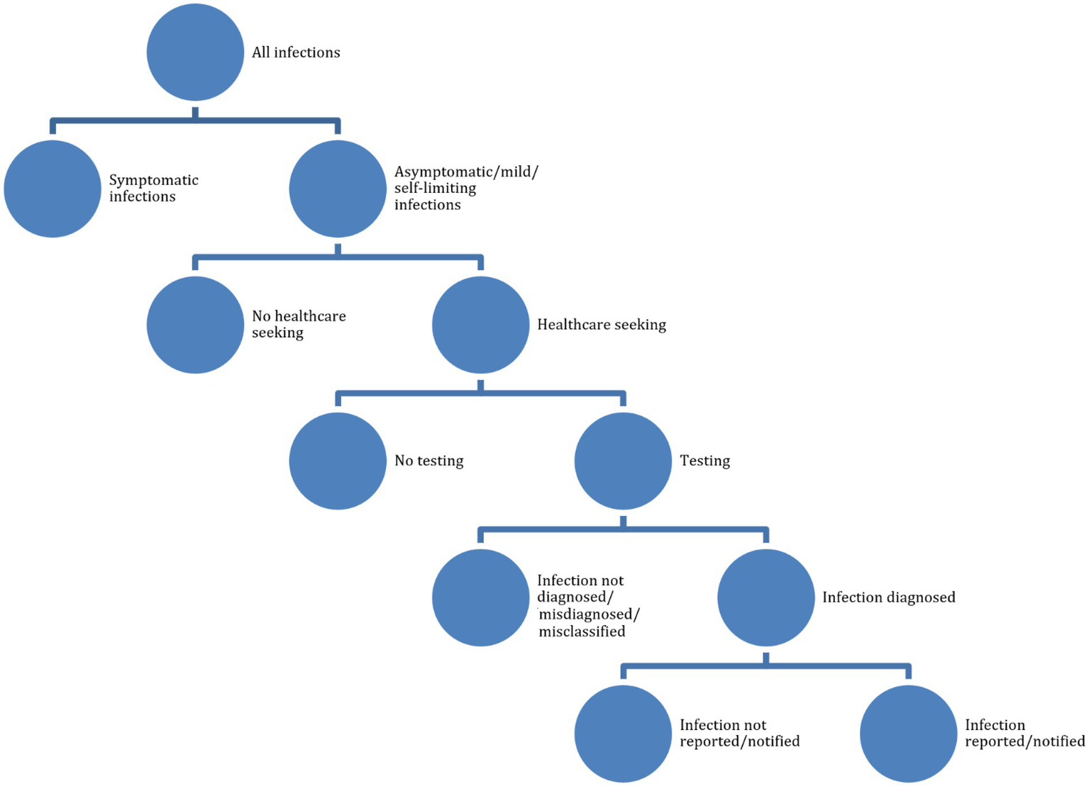 The real magnitude of the burden of disease could be masked by failures in ascertainment and under-detection. As such, underestimation affects the efficiency and reliability of surveillance and notification systems and compromises the possibility of making informed and evidence-based policy decisions in terms of the adoption and implementation of ad hoc adequate preventive measures. For example, another infectious outbreak, the still ongoing “Coronavirus Disease 2019” (COVID-19) pandemic was initially underestimated and this, along with the high degree of contagiosity of the virus, contributed to its quick global spread (Wu et al., 2020; Nakamoto and Zhang, 2021).