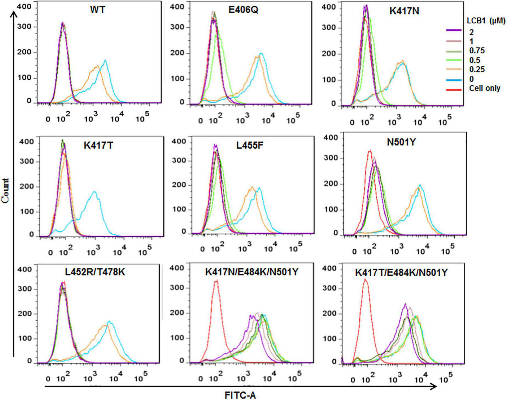 Resistance profiles of diverse variants of concerns and variant of interest to LCB1 inhibitor