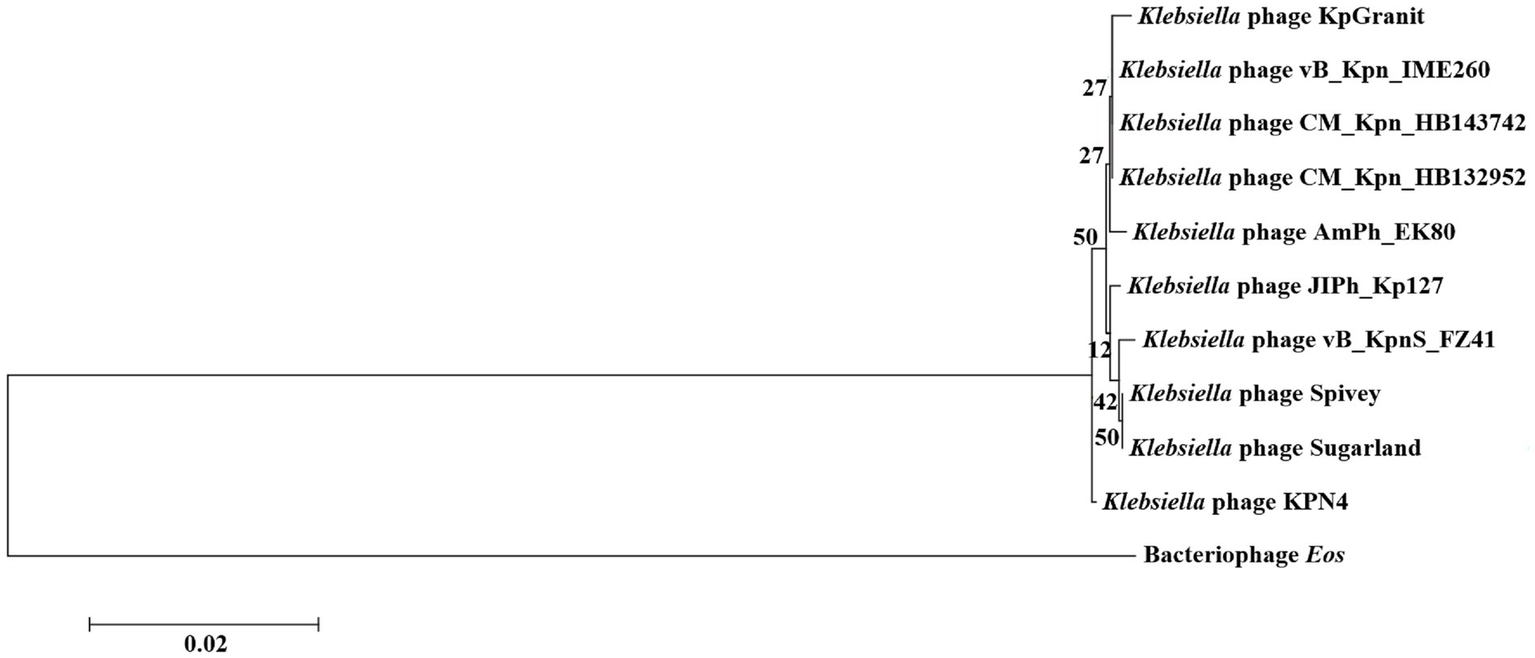 Bovine mastitis, a common disease on dairy farms worldwide, causes huge economic losses (Angelopoulou et al., 2019). Antibiotics are frequently used to treat bovine mastitis (Klaas and Zadoks, 2018), but overuse has induced multidrug-resistant (MDR) bacterial strains, contributing to treatment failures (Gordillo Altamirano and Barr, 2019). It is well known that K. pneumoniae is an important cause of bovine mastitis (Gao et al., 2017; Cheng et al., 2020) and many strains of K. pneumoniae isolated from bovine mastitis are highly resistant to common antibiotics, with various MDR strains detected (Cheng et al., 2019). Phages have much potential as an alternative to antibiotics (Abedon, 2019; Pires et al., 2020). Phages can be used to treat patients infected with multidrug-resistant bacteria, with remarkable therapeutic effects (Corbellino et al., 2020). Phages may be the best agent for treatment of multidrug-resistant bacteria causing bovine mastitis.